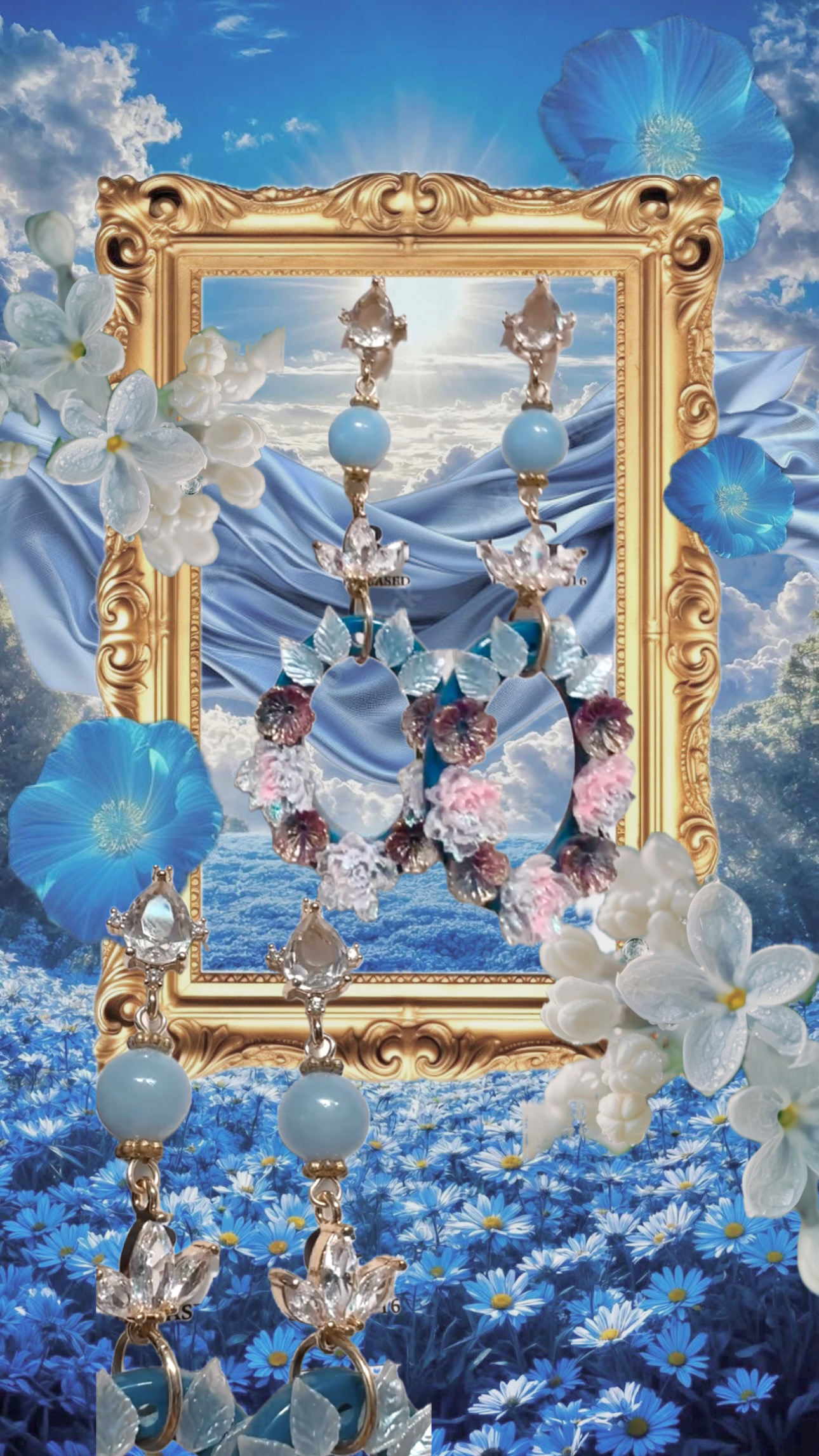 ✨晨曦花園💐 用了UV光變色小葉子+樹脂花花圈 遂片葉子同花花貼上花圈 再加上閃閃鋯石做的小冠冕 清新又帶少許奢華 加上粉色摩根石圓珠襯托 如夢幻花園般夢幻又浪漫的雙重感覺 925銀鋯石耳針 #oneoff 重量:輕 長度:約9cm