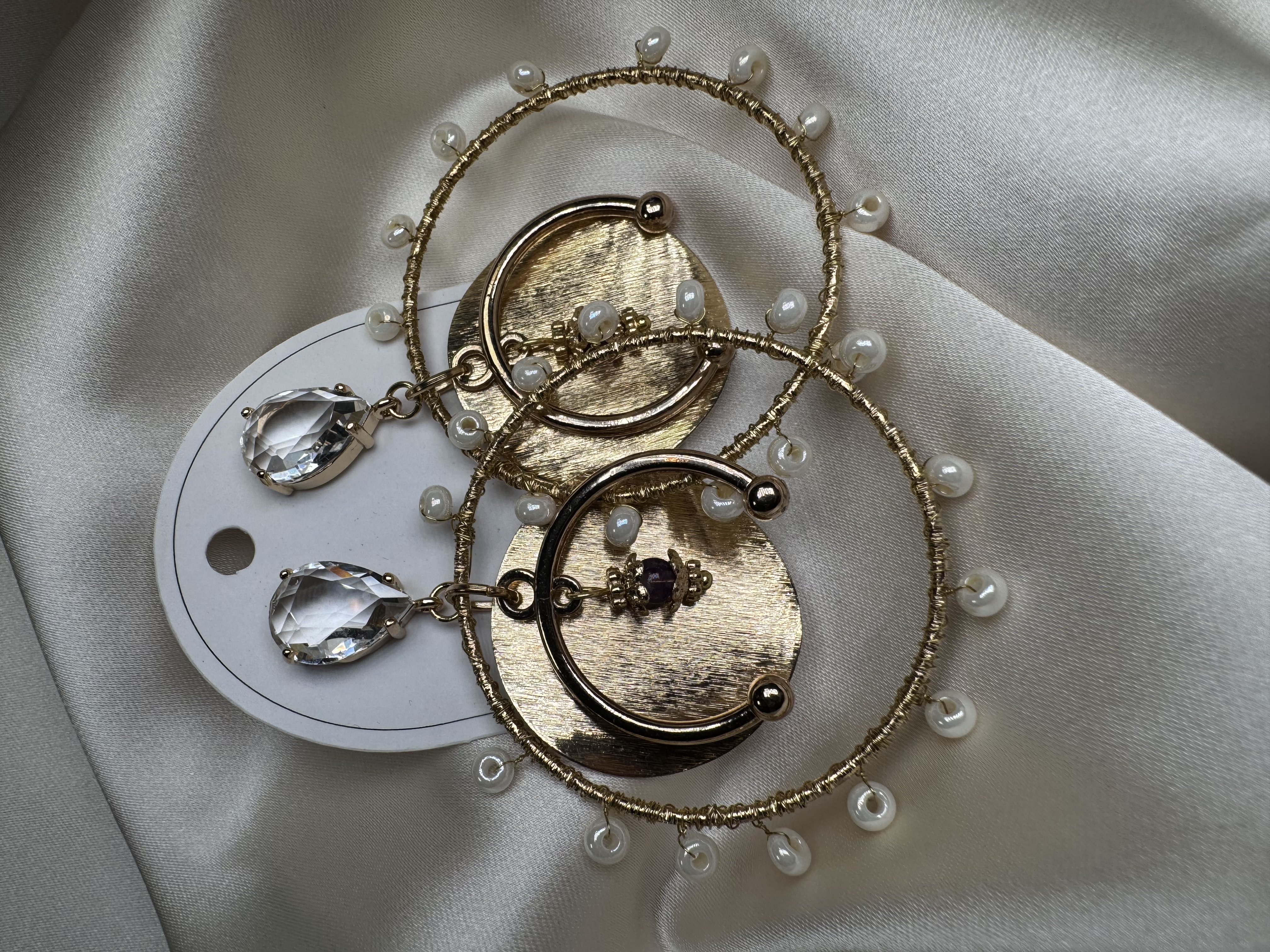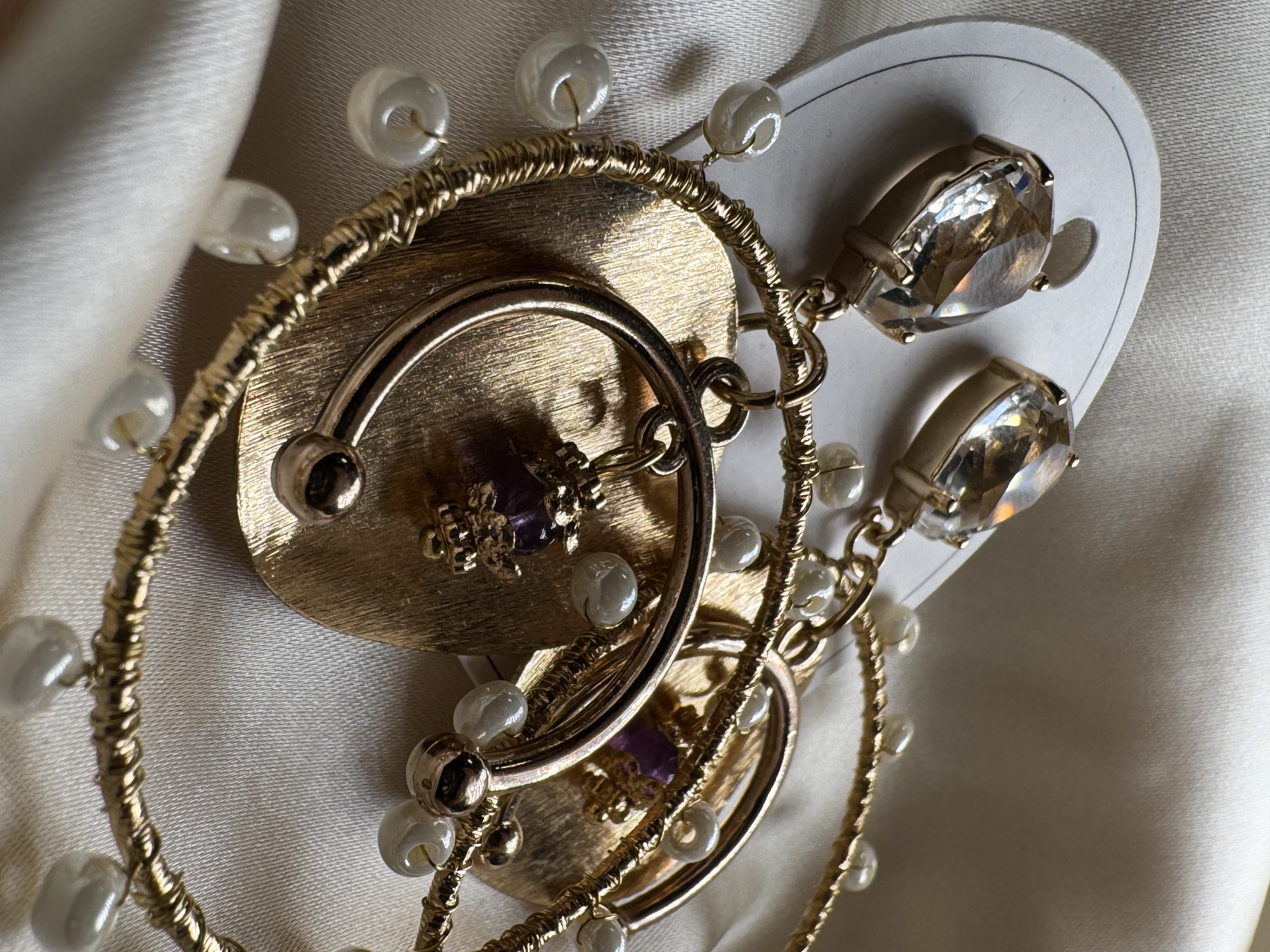好似太陽神嘅款式 碌到最後有片可以睇下detail 材質:925銀耳針 / 玻璃石耳釘/ 米白日本玻璃珠/紫水晶珠 重量:一般 長度:長約7cm