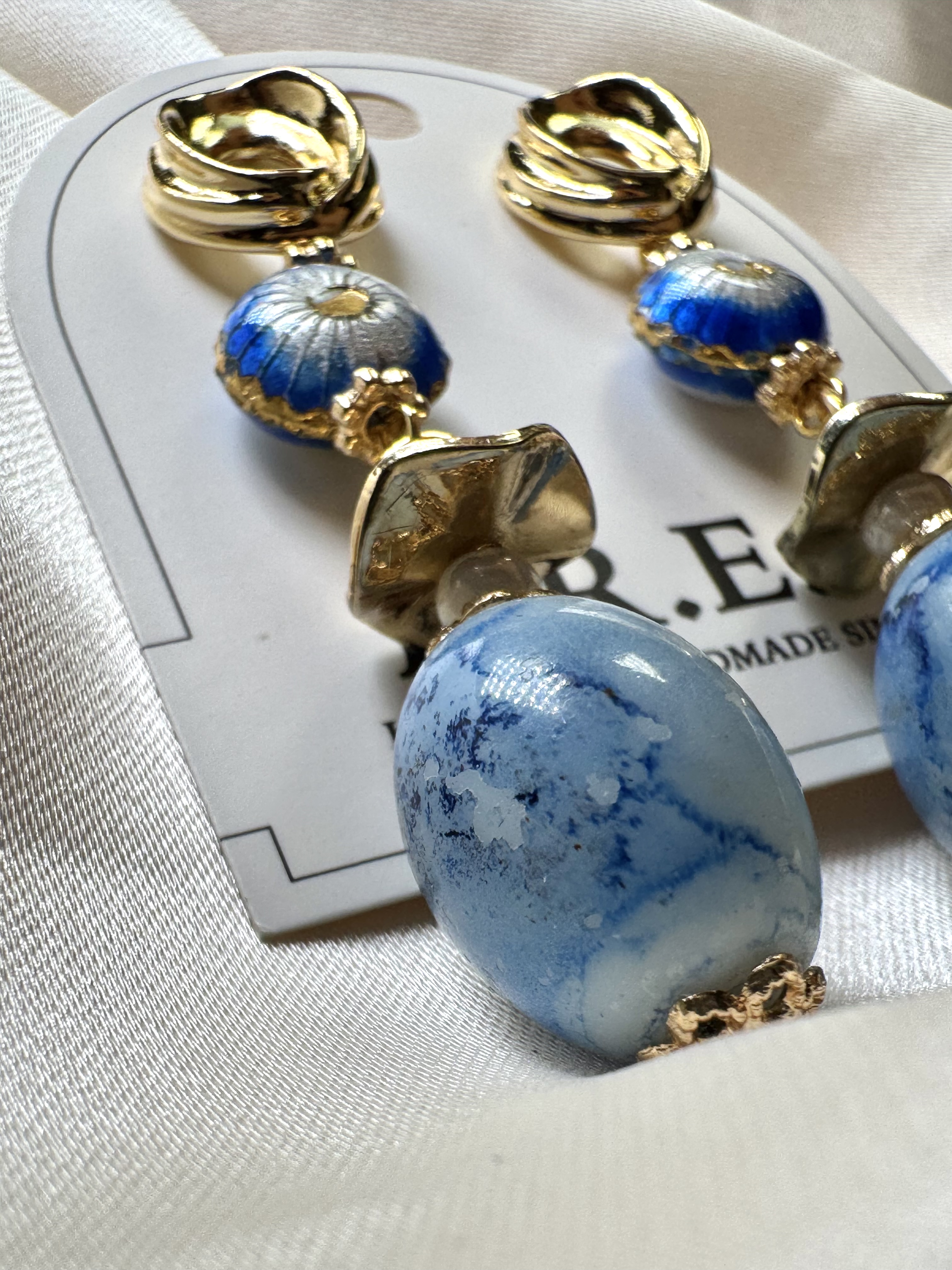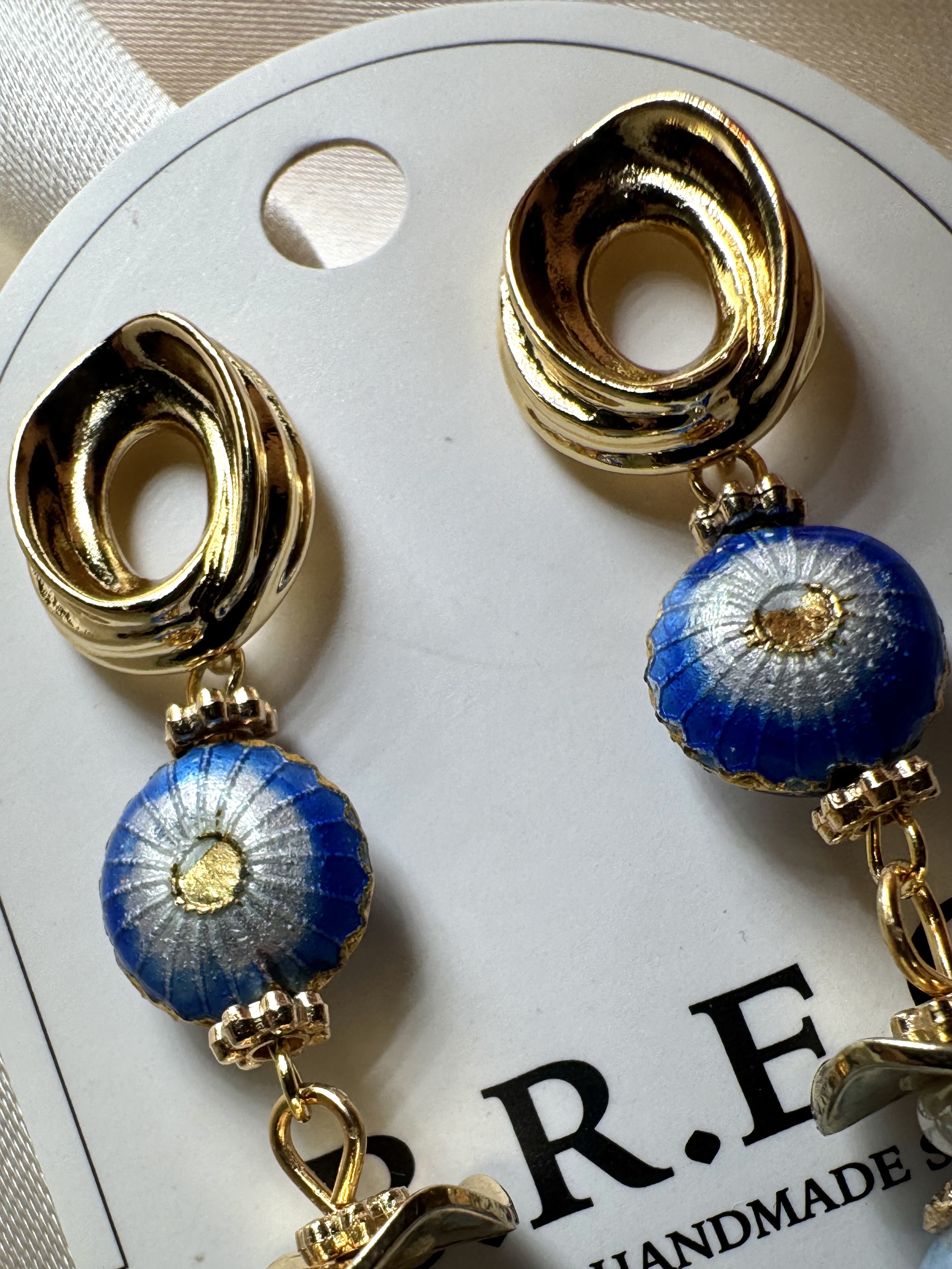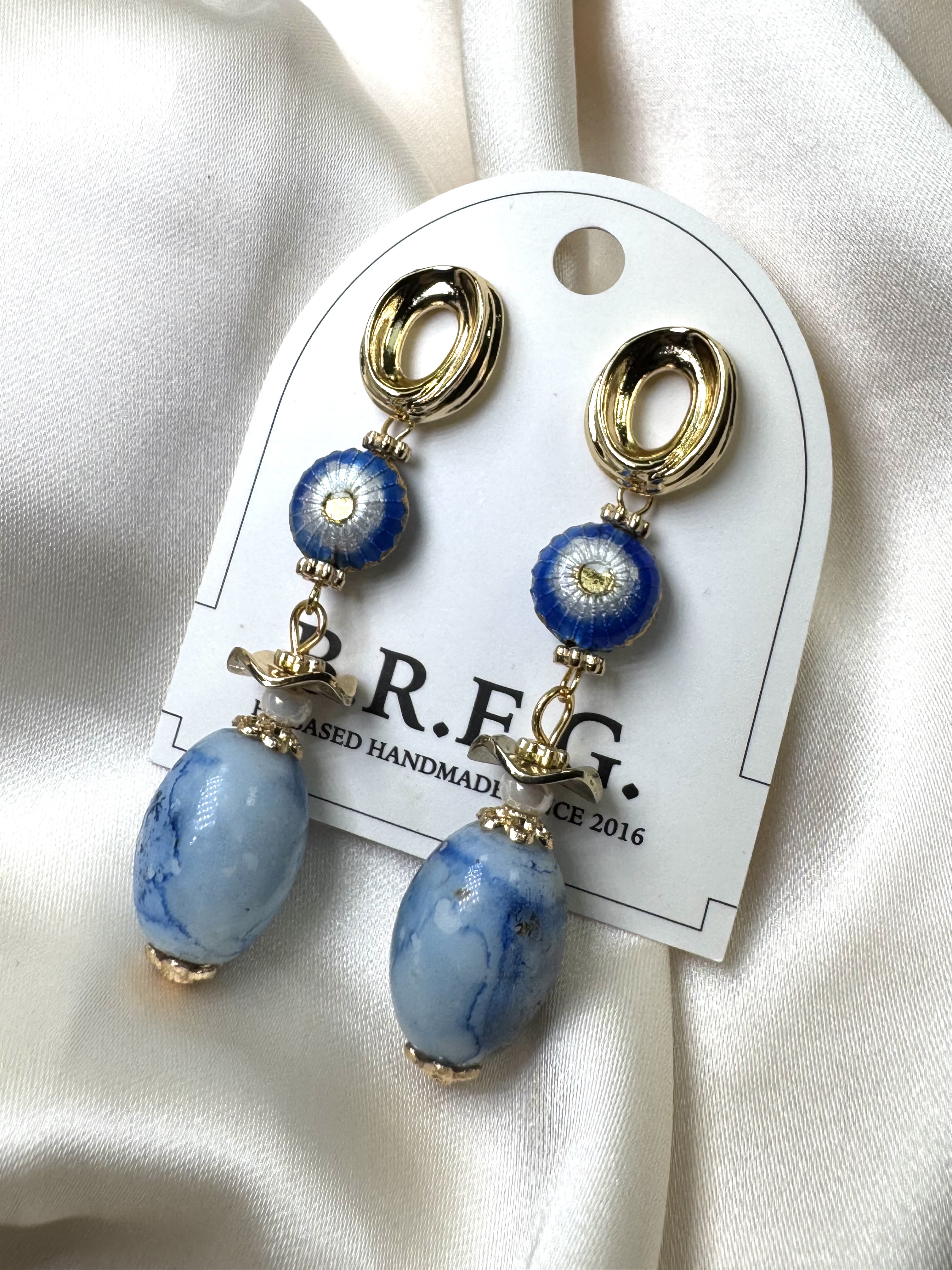 材質:925銀耳針/ 景泰藍珠/ 煙羅瓷珠 重量:一般 長度:長約5cm
