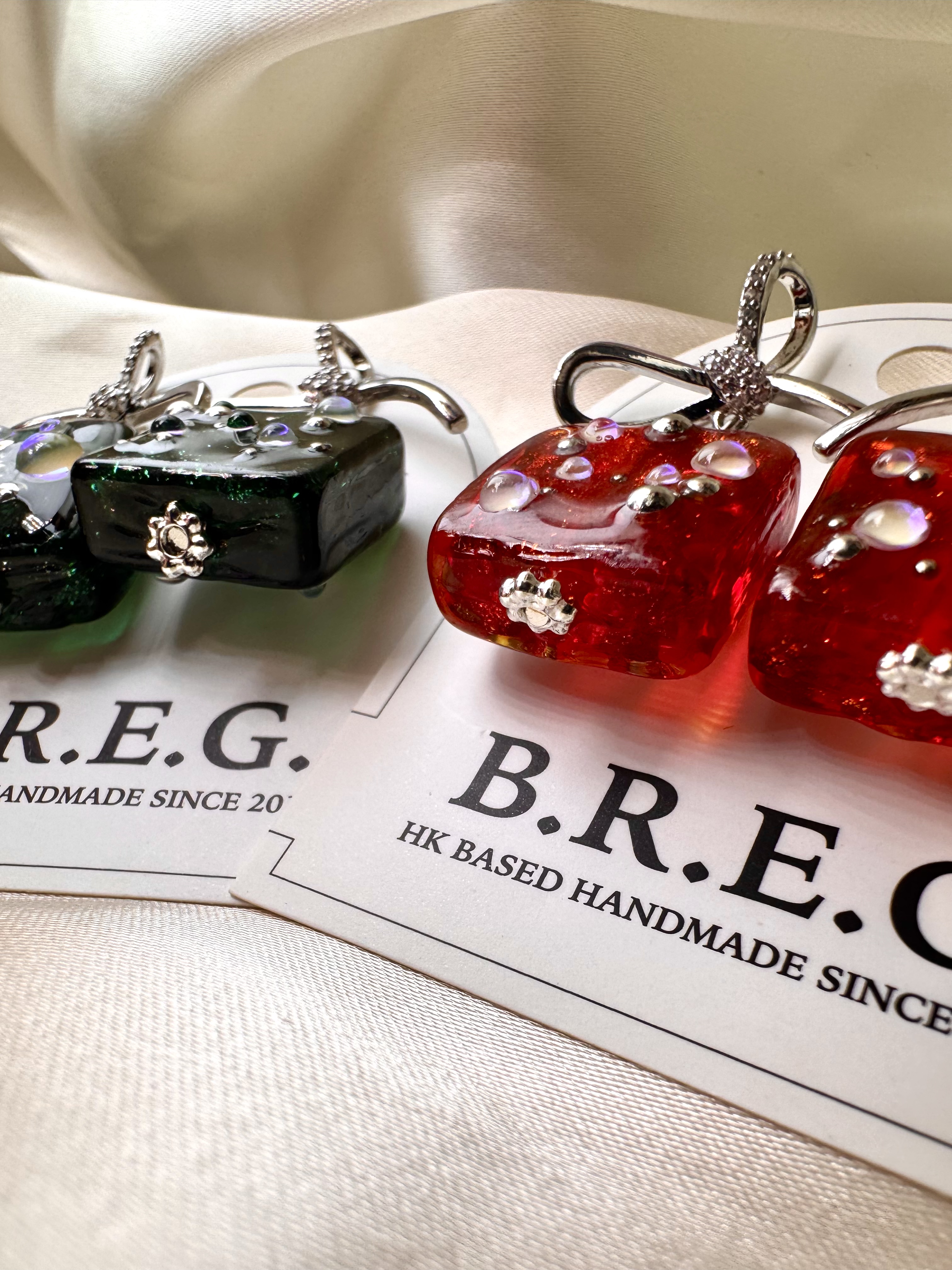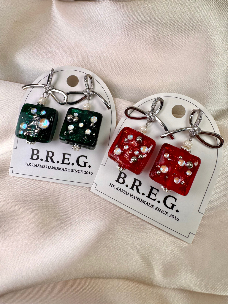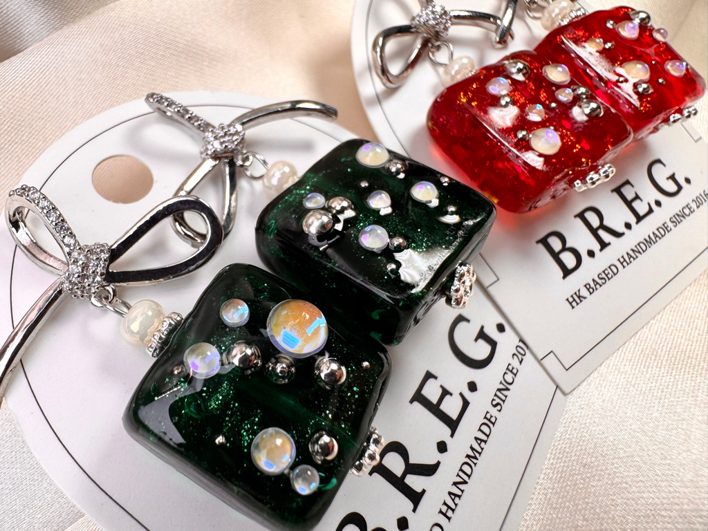 材質:925銀耳針/鋯石蝴蝶結耳釘/日本玻璃米珠/方糖玻璃珠/UV樹脂膠 重量:一般 長度:長約3cm