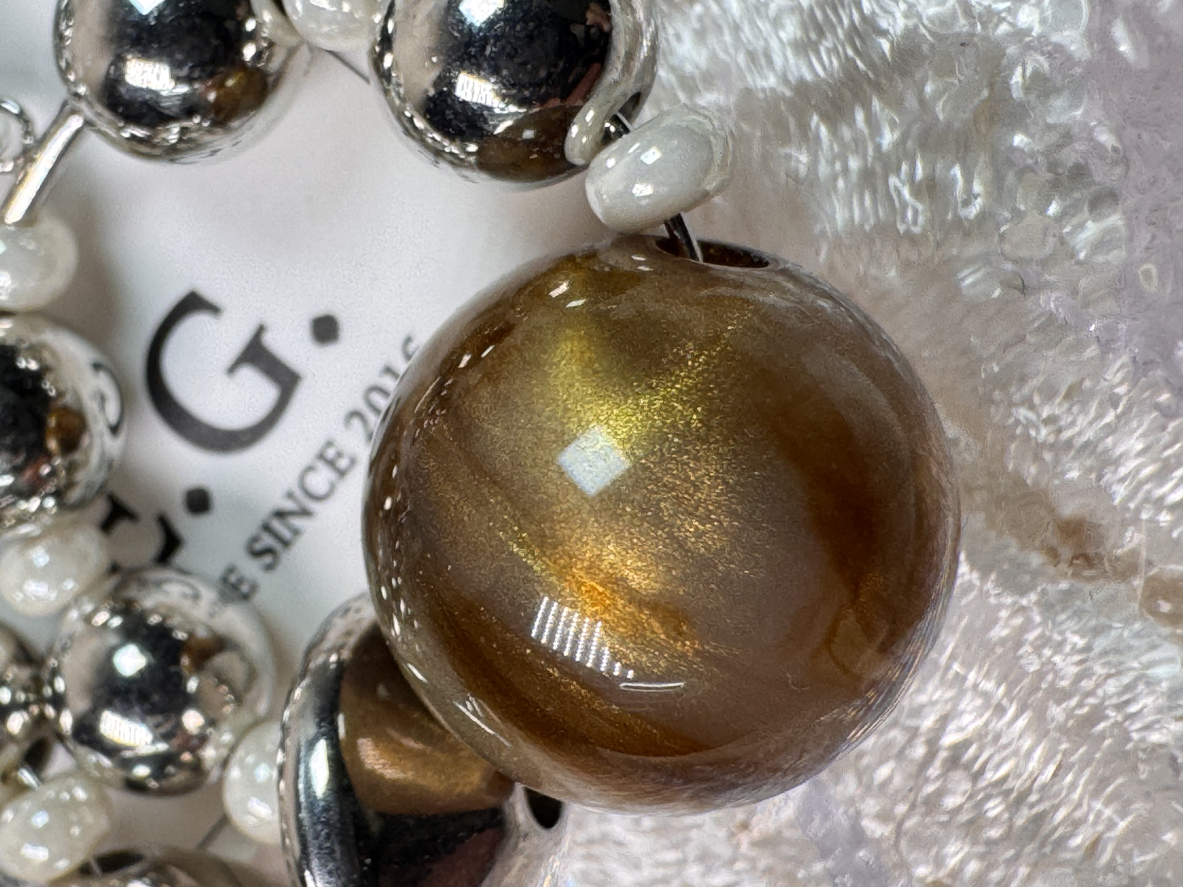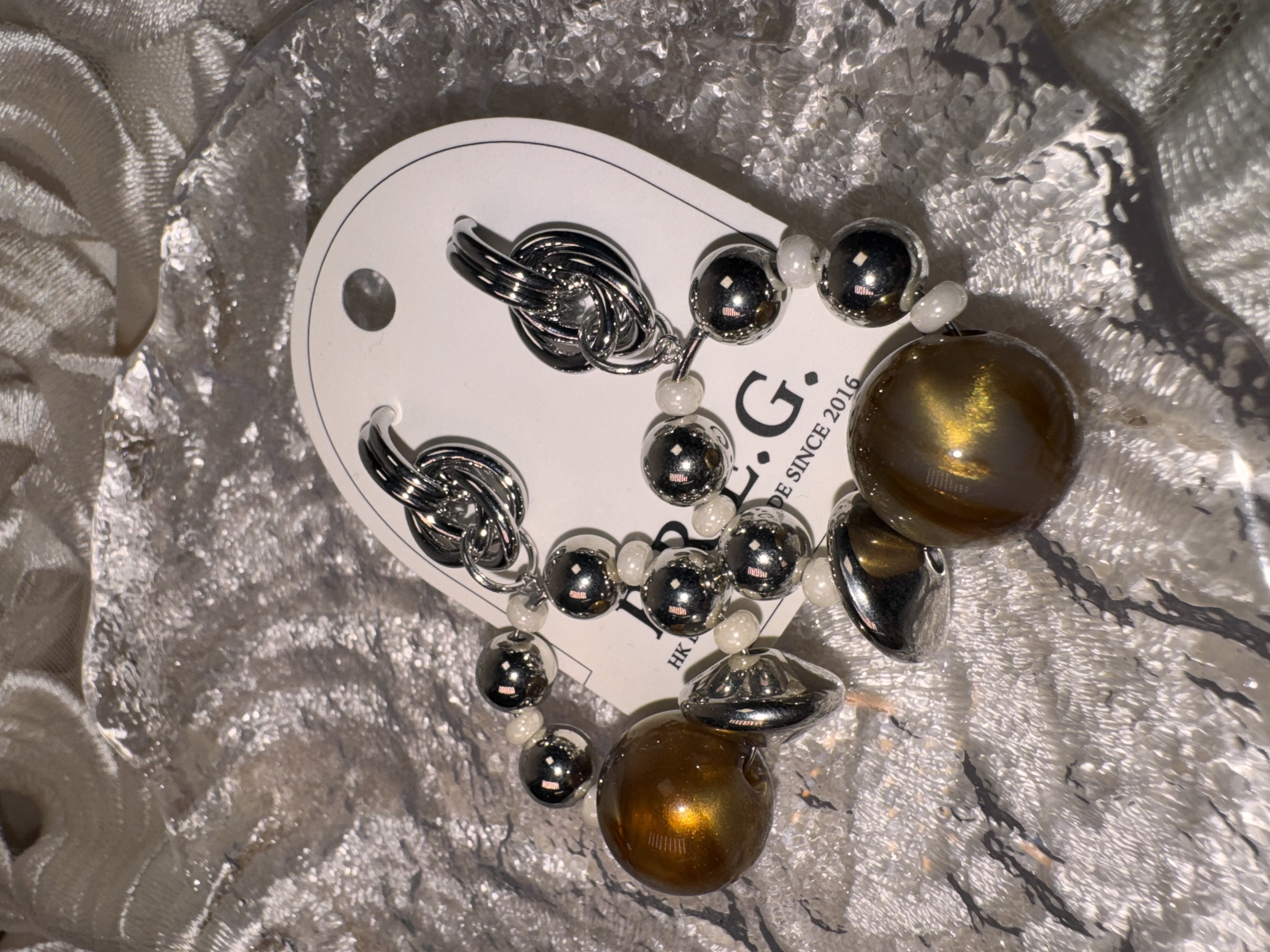 材質:925銀耳針/日本玻璃米珠/流光閃金珠 重量:一般 長度:長約5cm