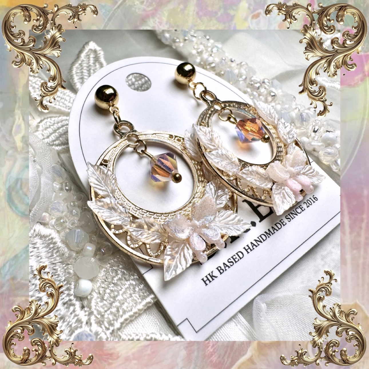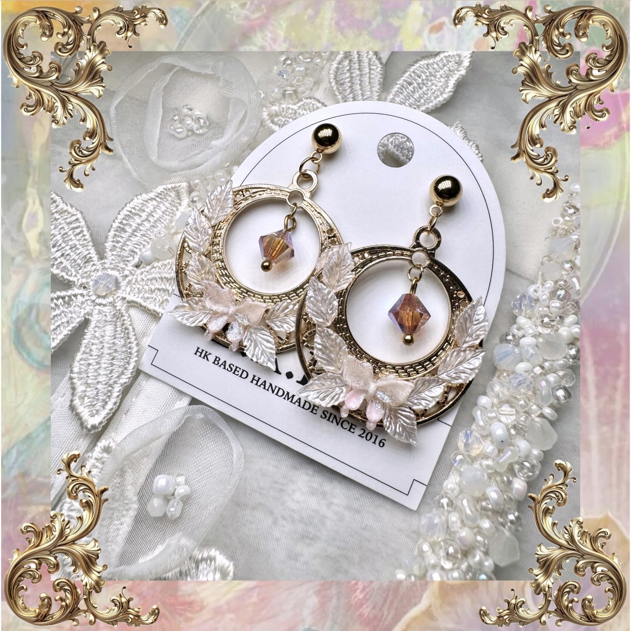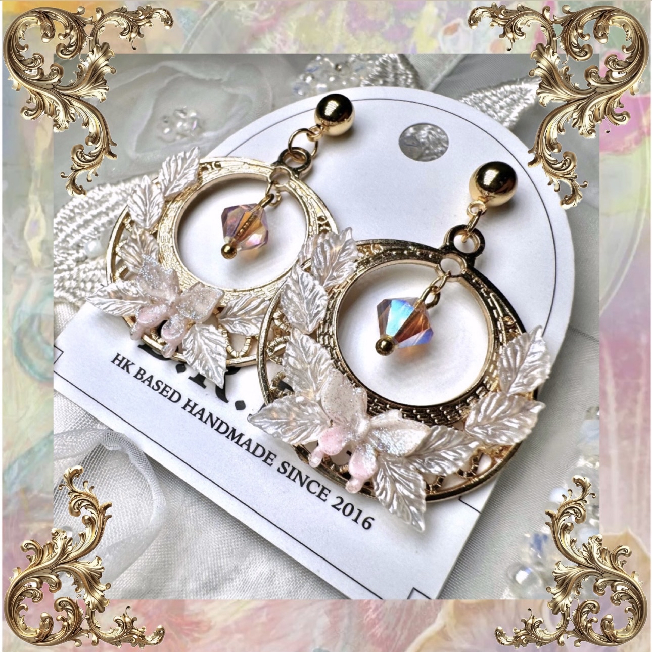施華洛世奇水晶珠+UV光變小葉子+小蝴蝶 珍珠白葉子在UV光/太陽光下會變成粉紫、粉紅及粉藍色! 效果請看最尾的影片!~ 重量:輕 長度:長約4cm