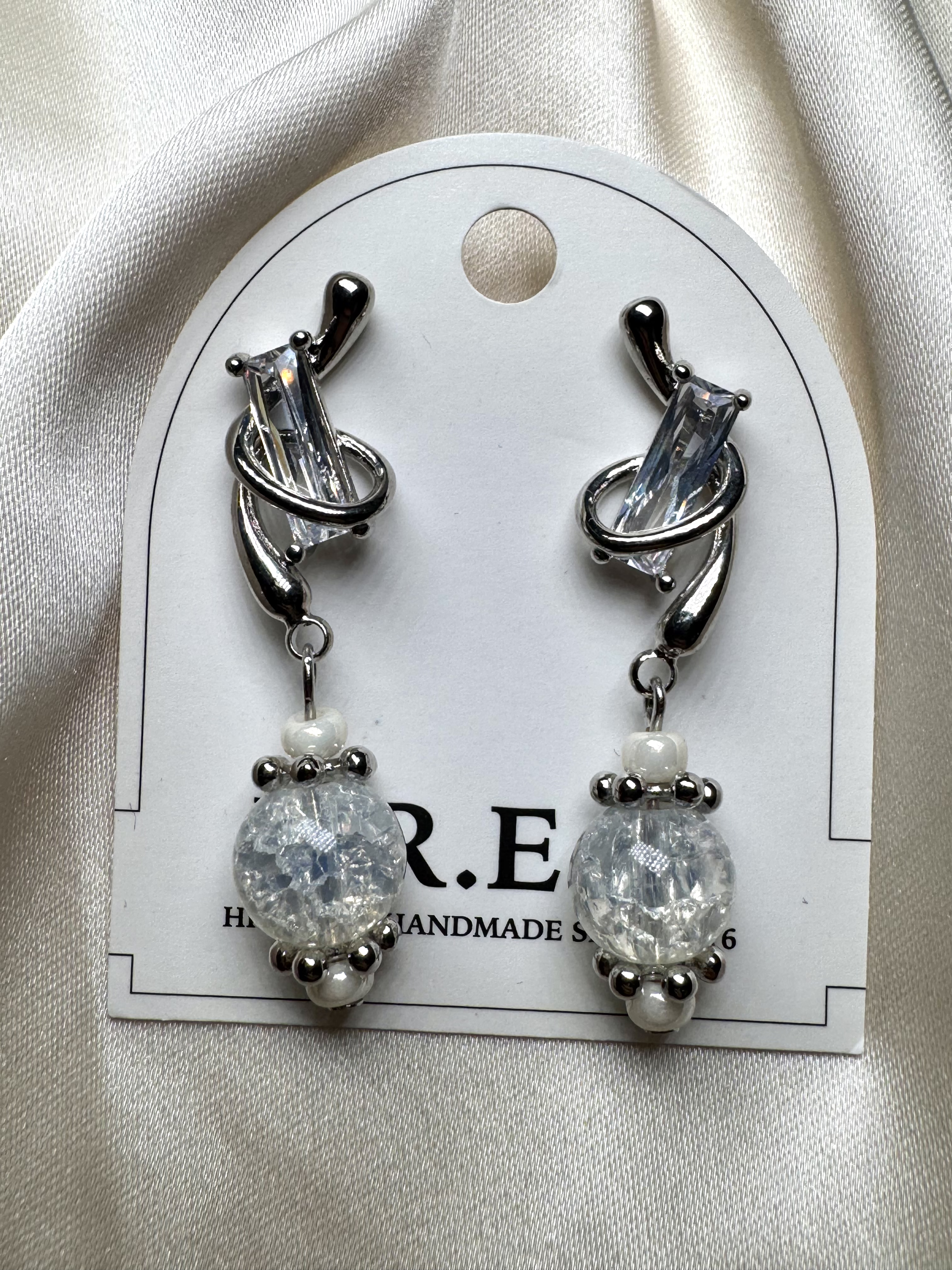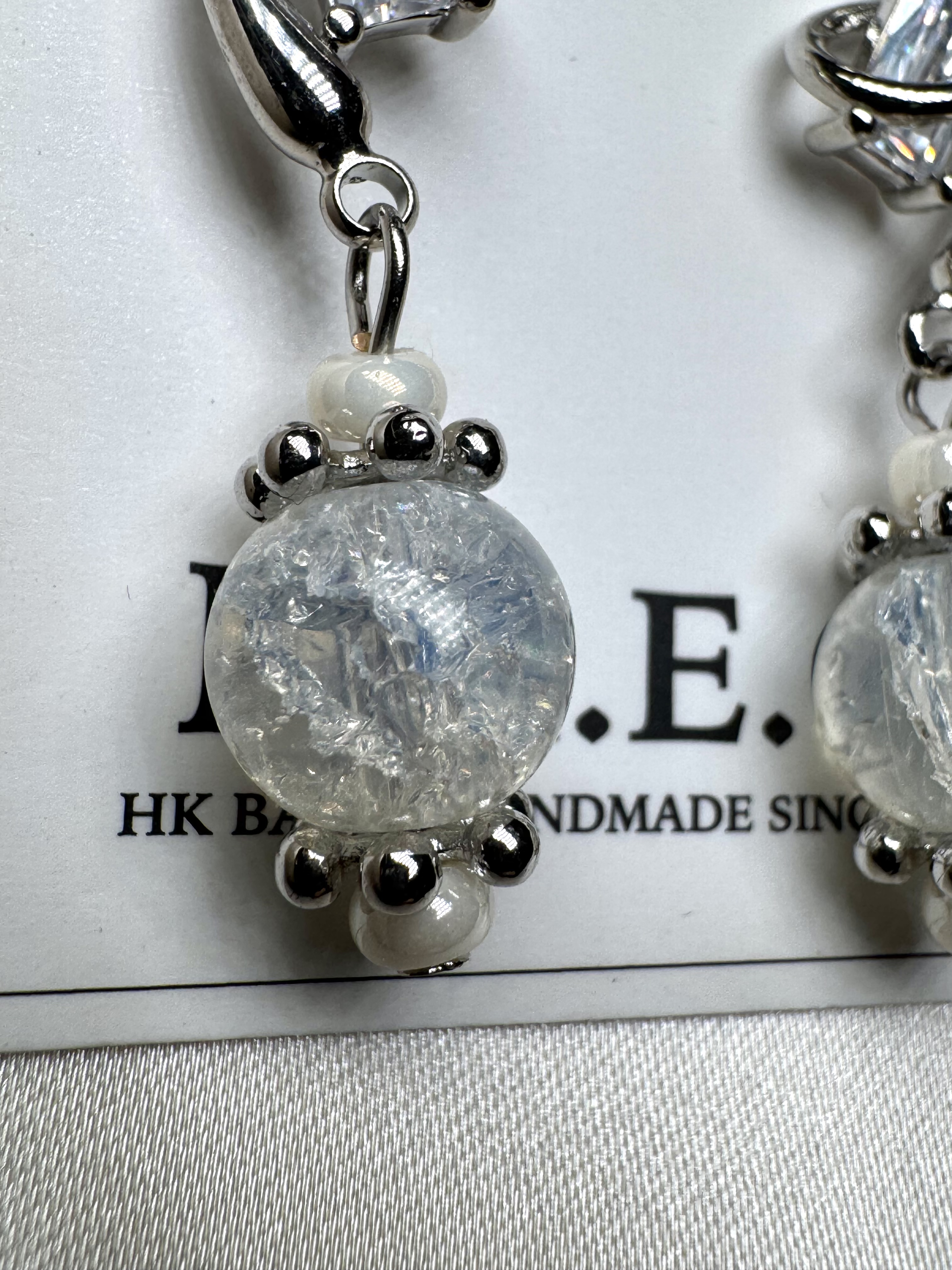 材質:925銀耳針/鋯石耳釘/日本玻璃米珠/ 爆花玻璃珠 重量:一般 長度:長約4cm