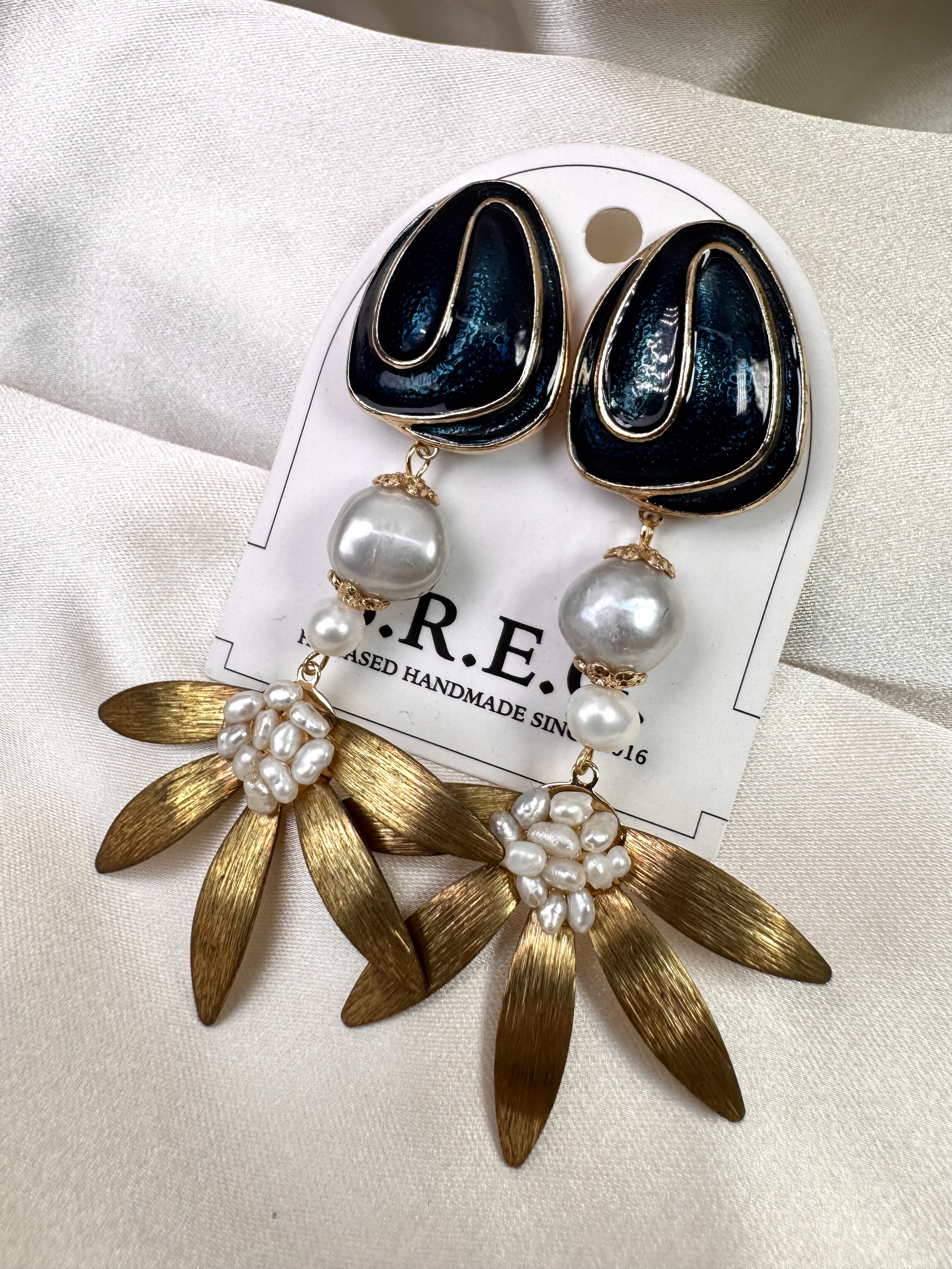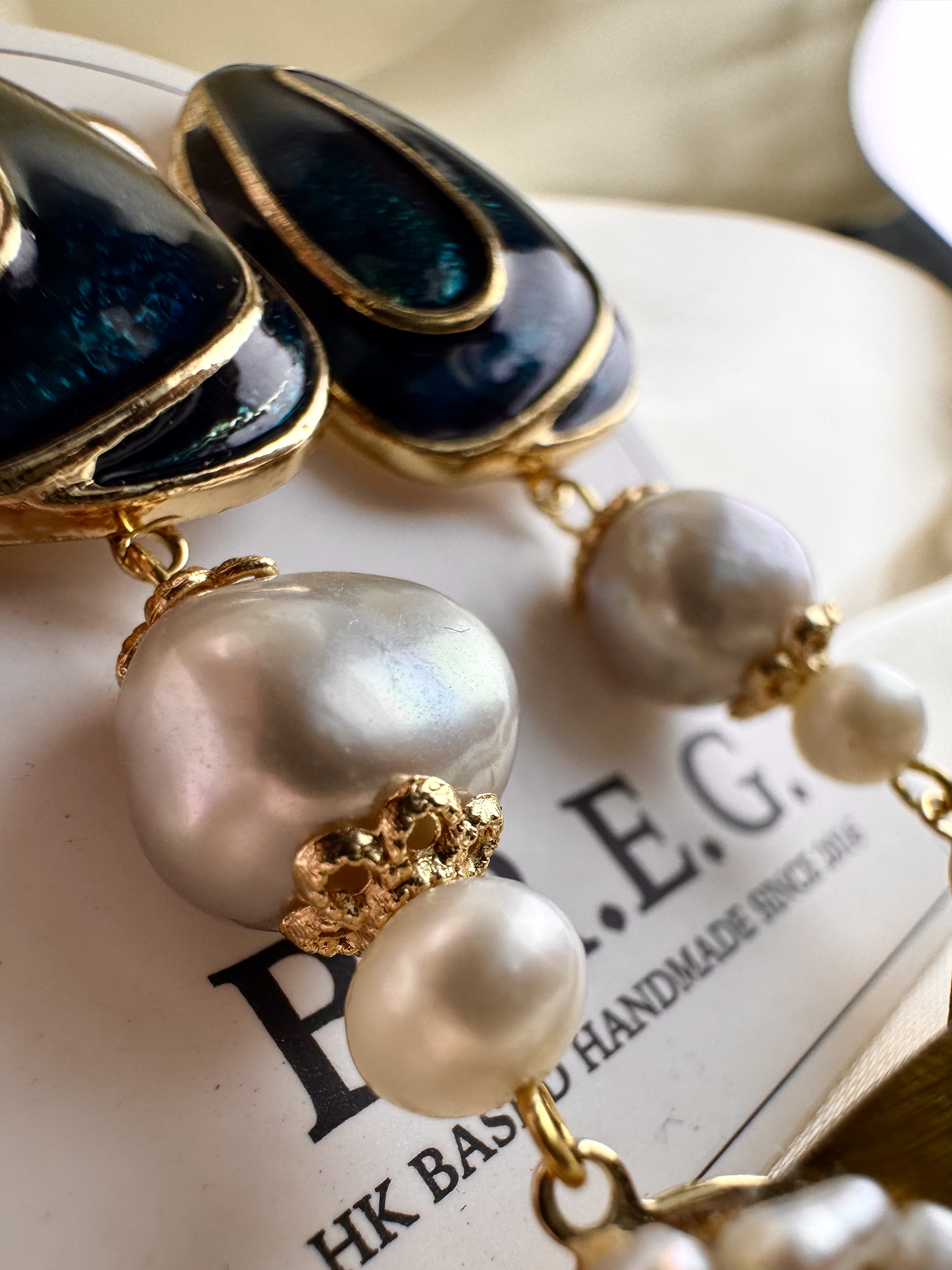 材質:925銀耳針/ 復古耳環/ 天然淡水珍珠 重量:一般 長度:約7cm