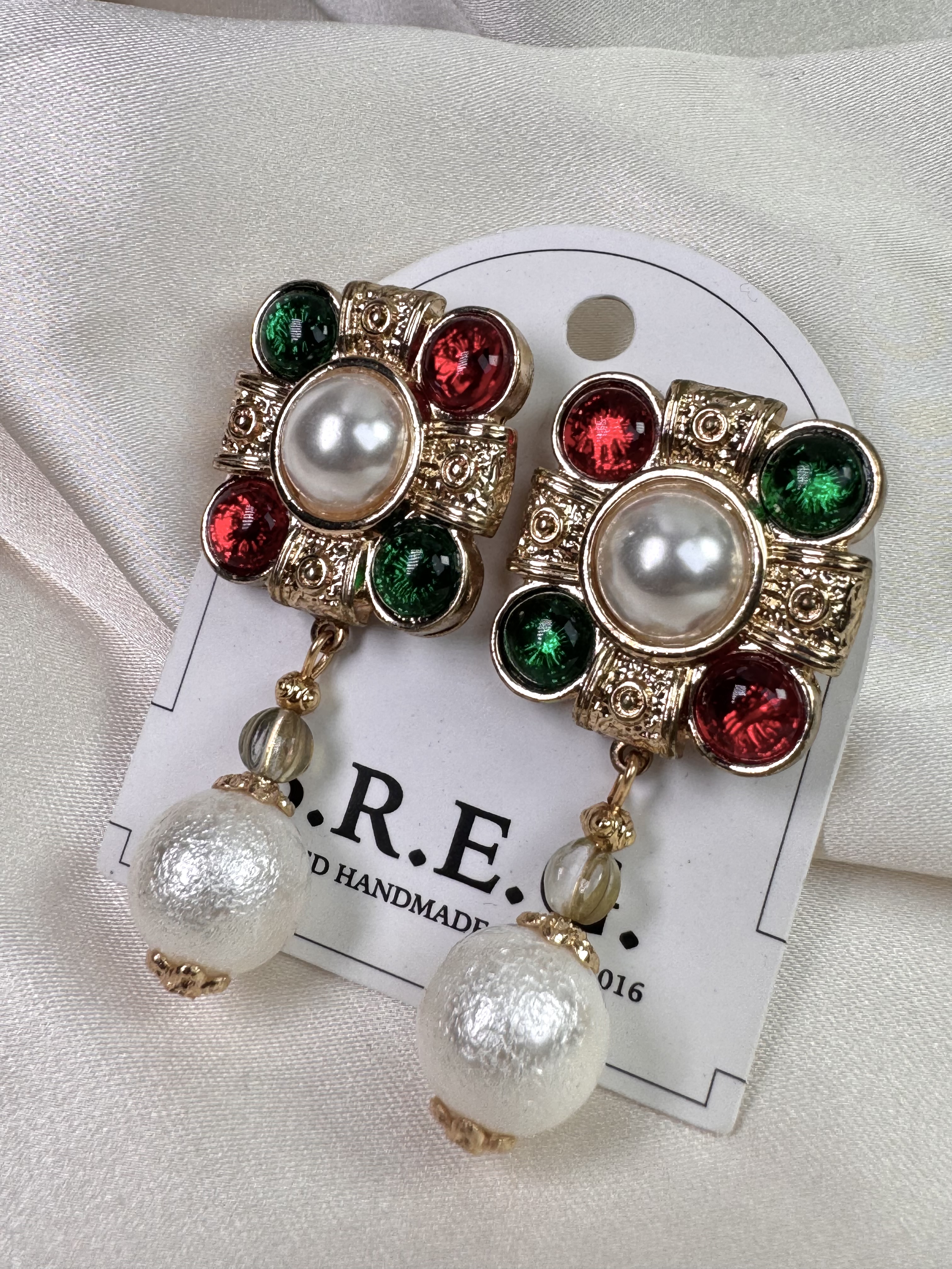 材質:復古耳環/瓷感棉花珠/日本南瓜珠/ 925銀耳針 重量:一般 長度:約5cm
