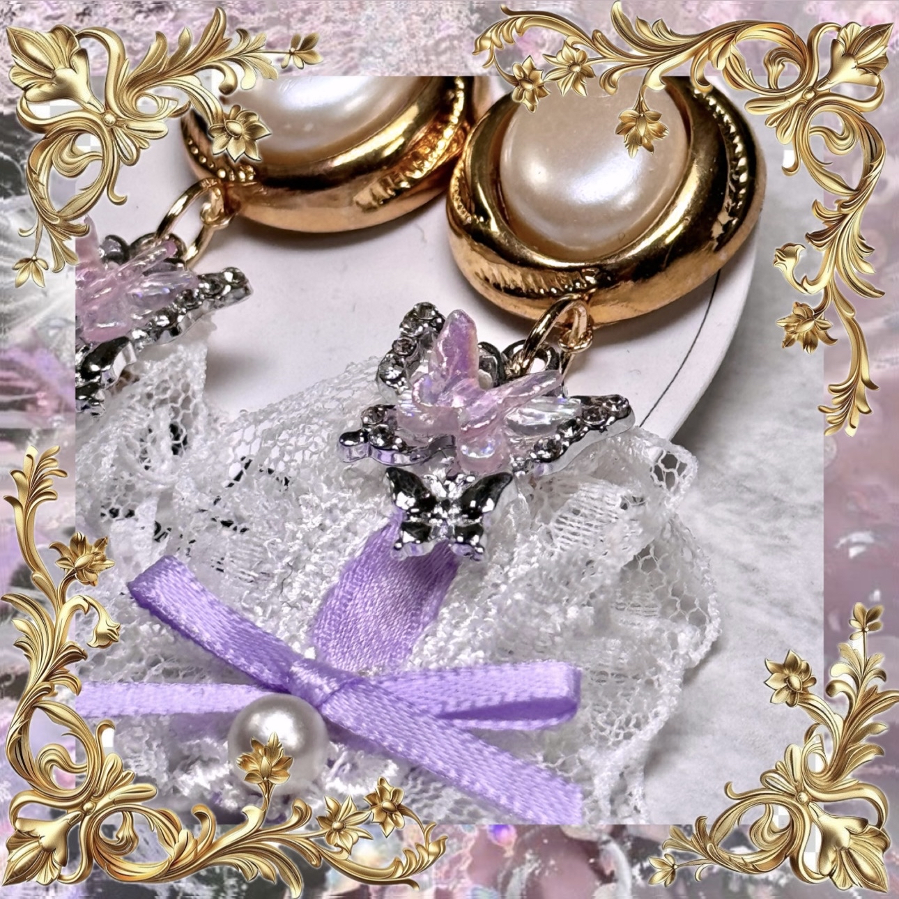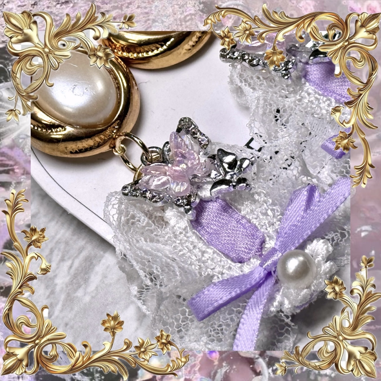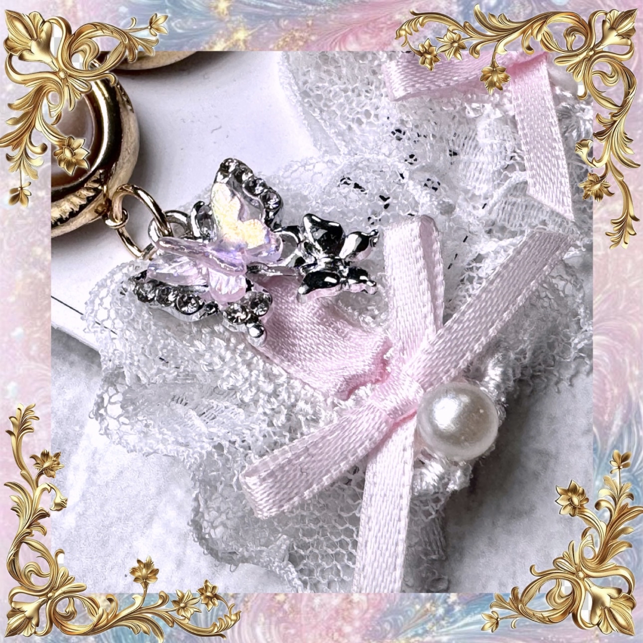 復古鈕扣+蕾絲織帶+絲帶蝴蝶結+幻彩蝴蝶+小珍珠 Lolita風格 重量:一般 長度:長約7cm