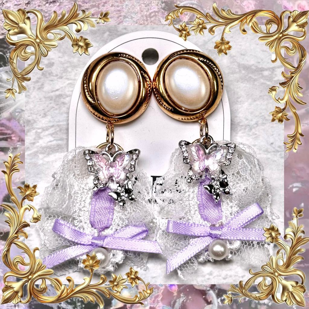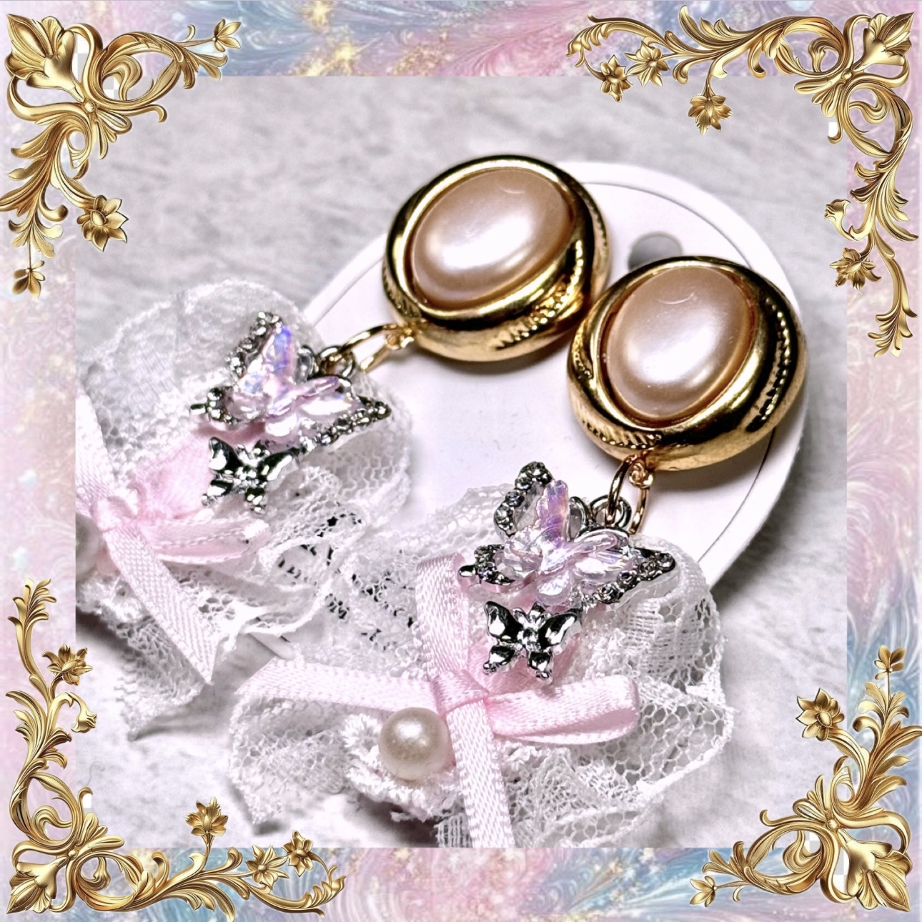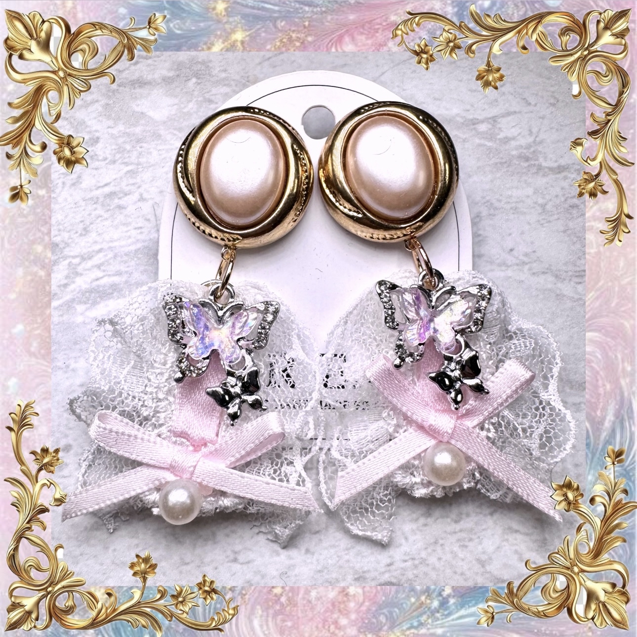 復古鈕扣+蕾絲織帶+絲帶蝴蝶結+幻彩蝴蝶+小珍珠 Lolita風格 重量:一般 長度:長約7cm