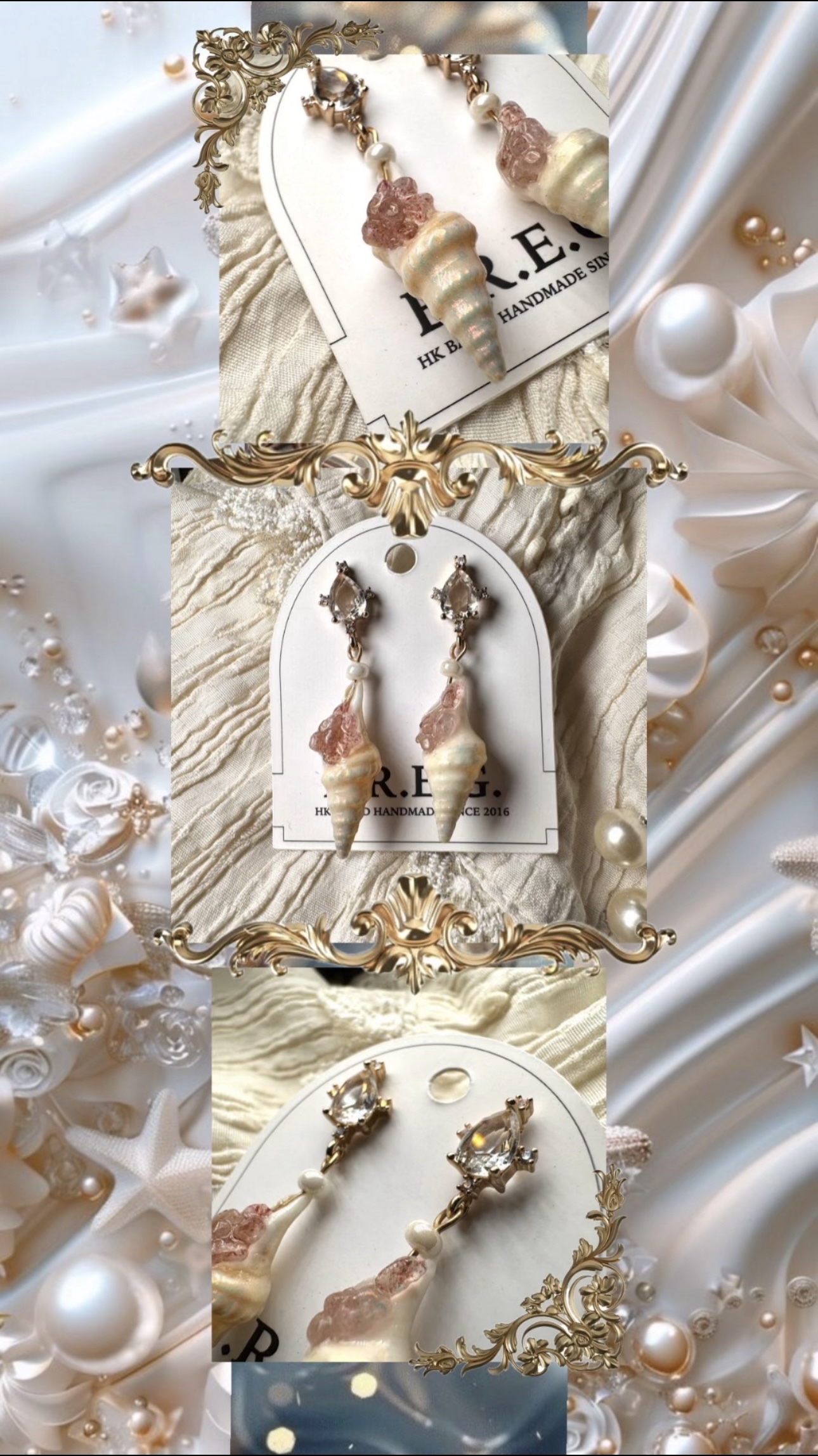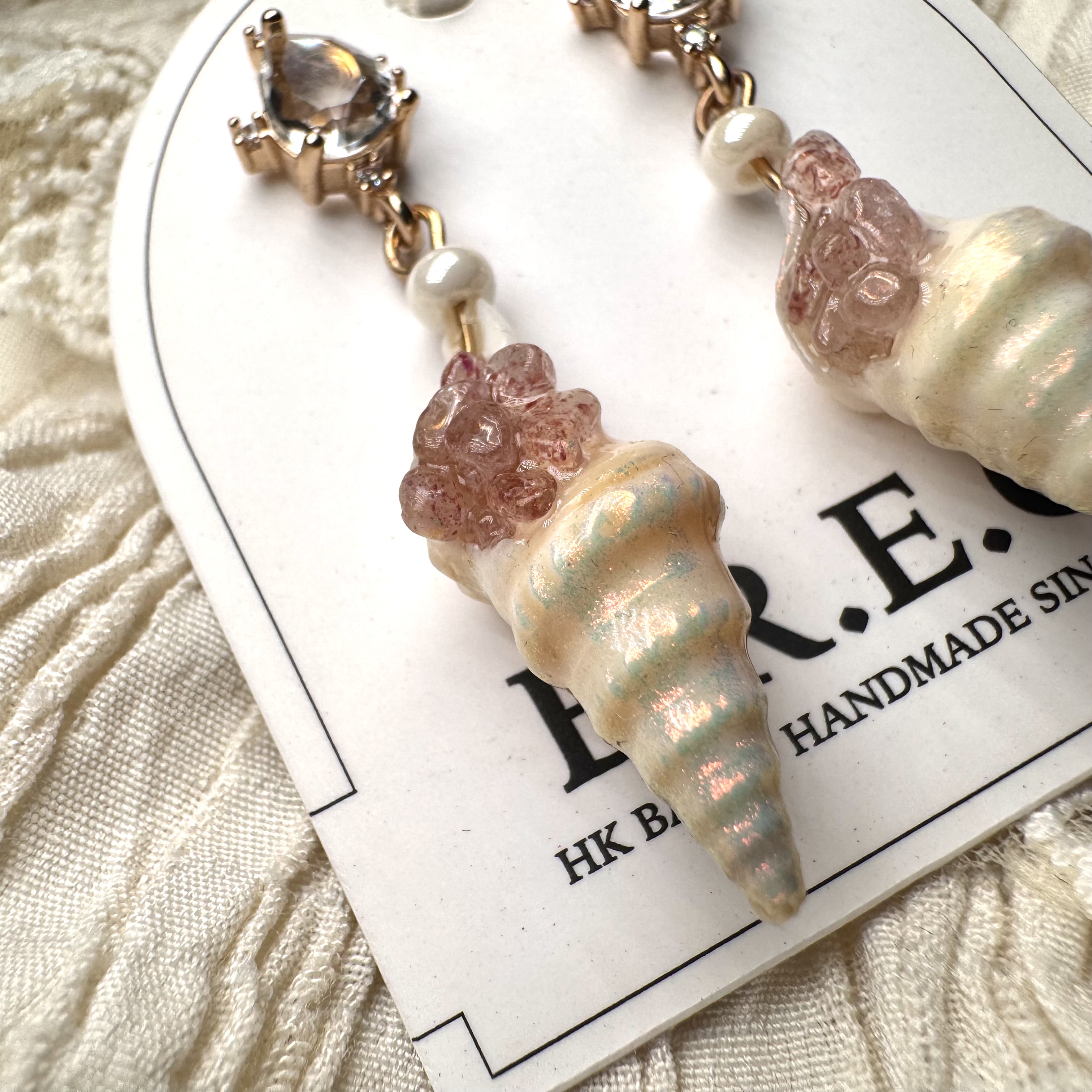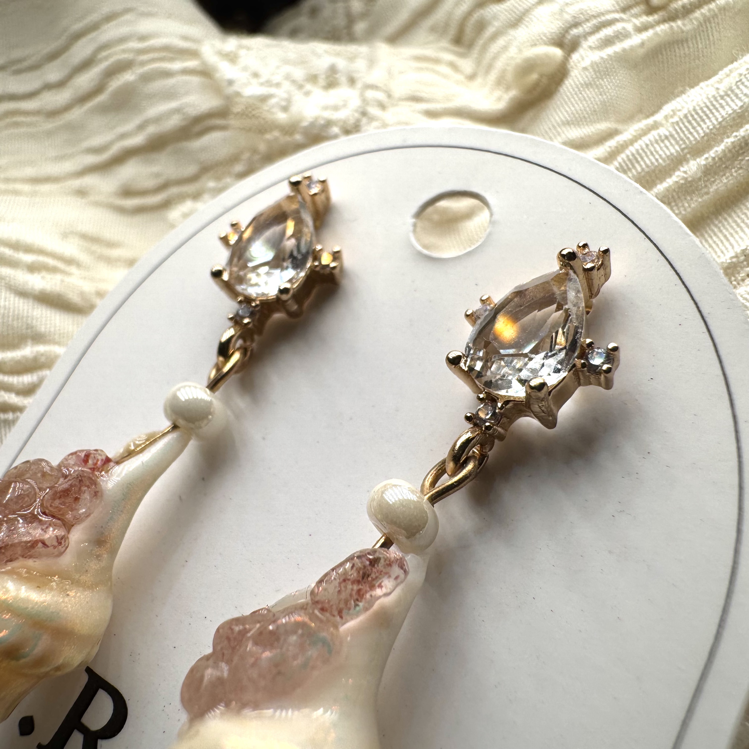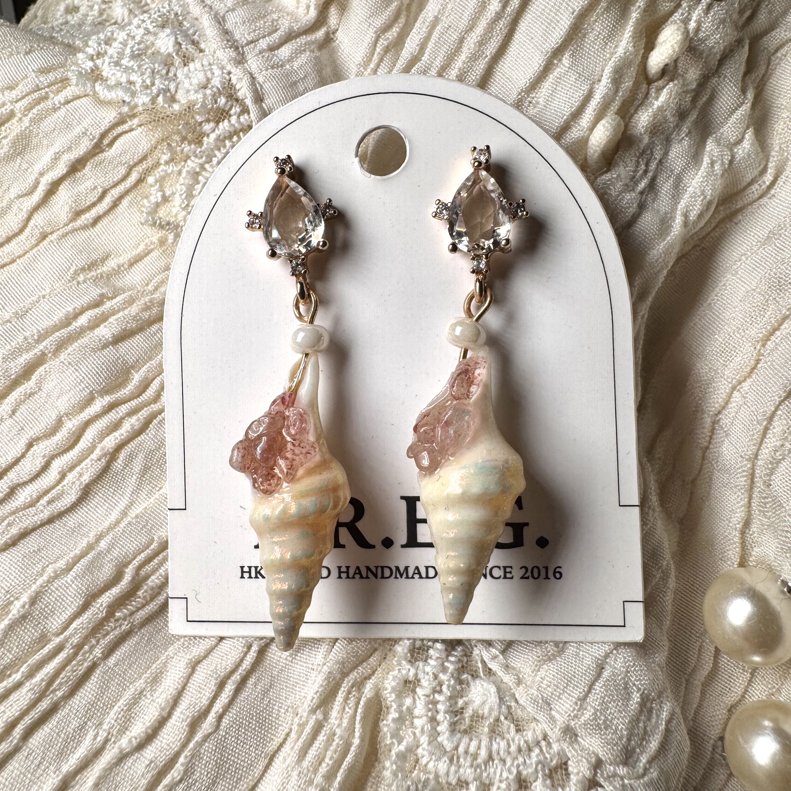 材質:天然貝殼+鋯石耳釘+草莓晶碎石+日本玻璃米珠+幻彩魔鏡粉 重量:一般 長度:長約5cm