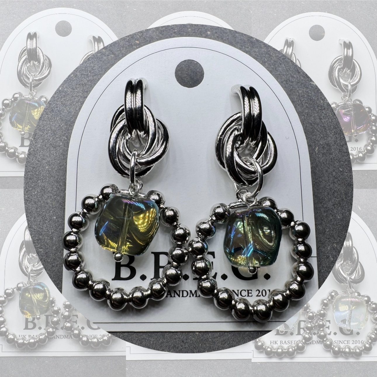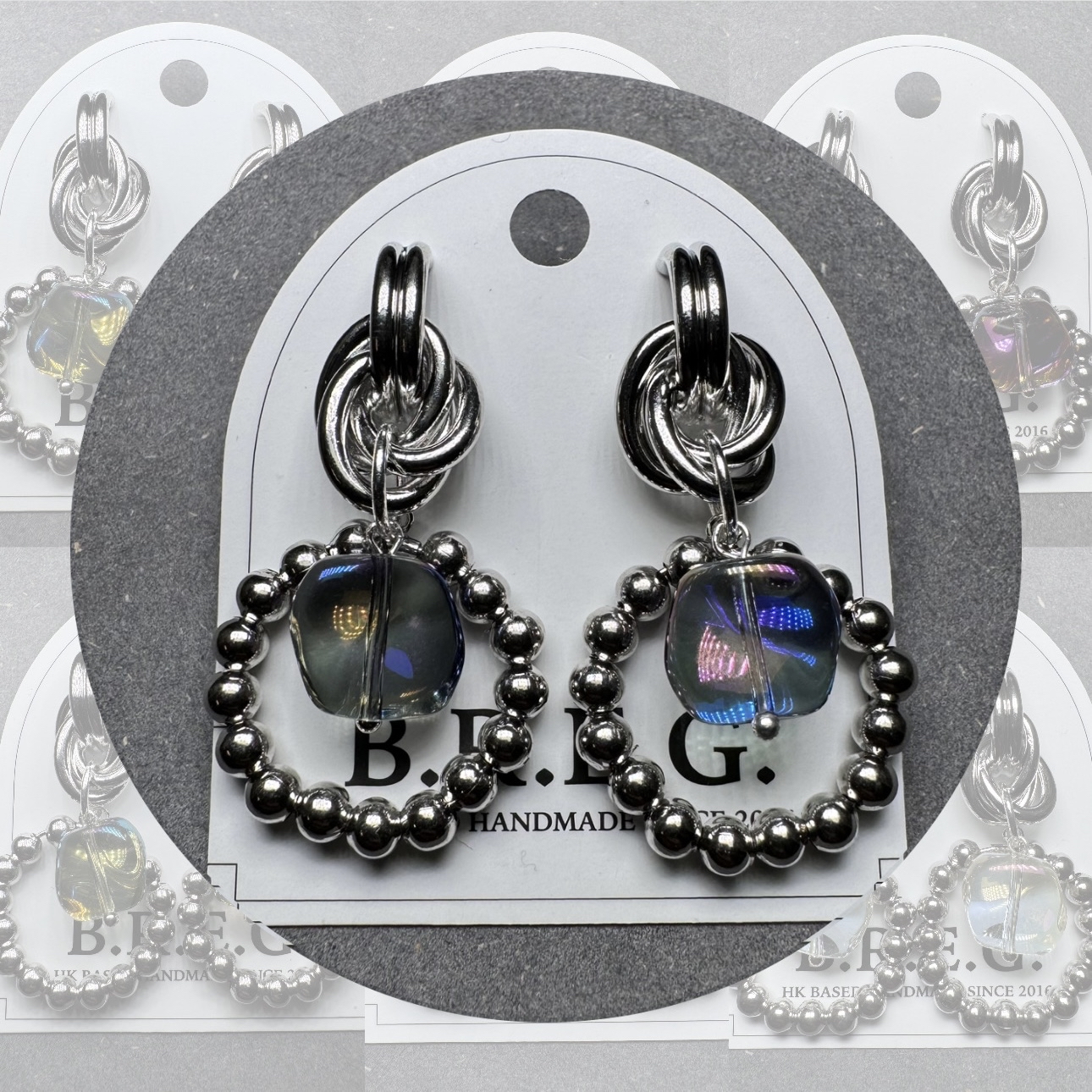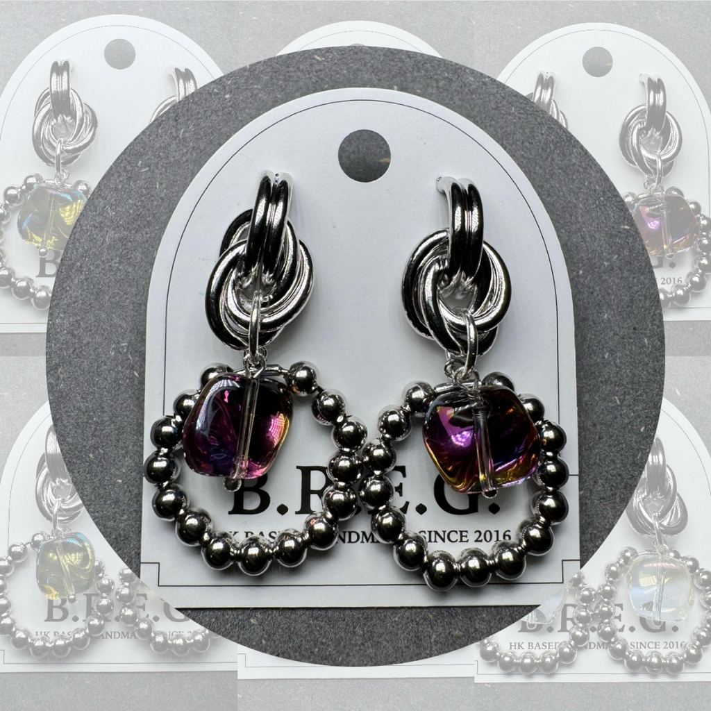 材質: 925銀耳針 /幻彩琉璃 /金屬珠環 重量:輕 長度:約4cm