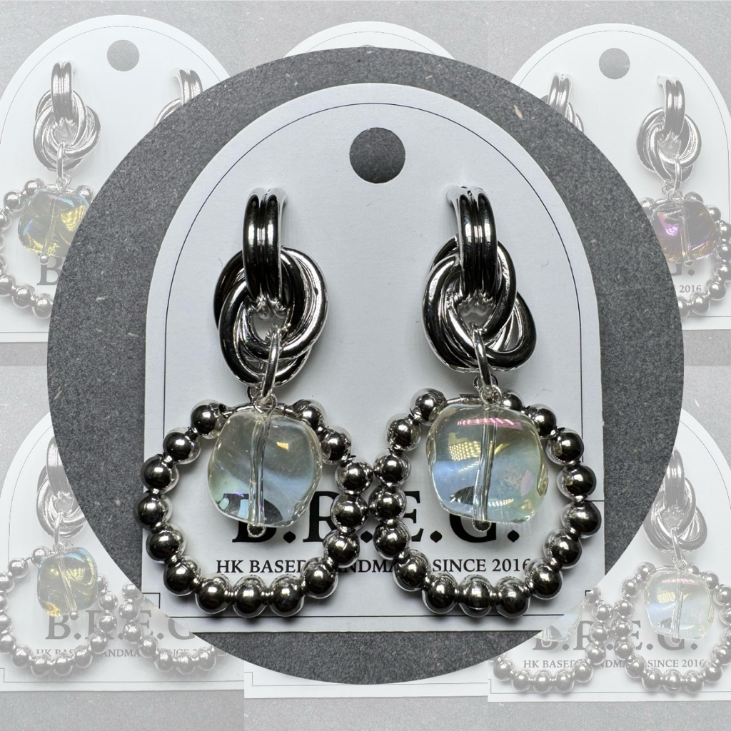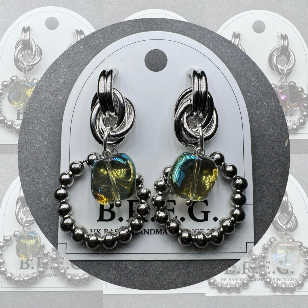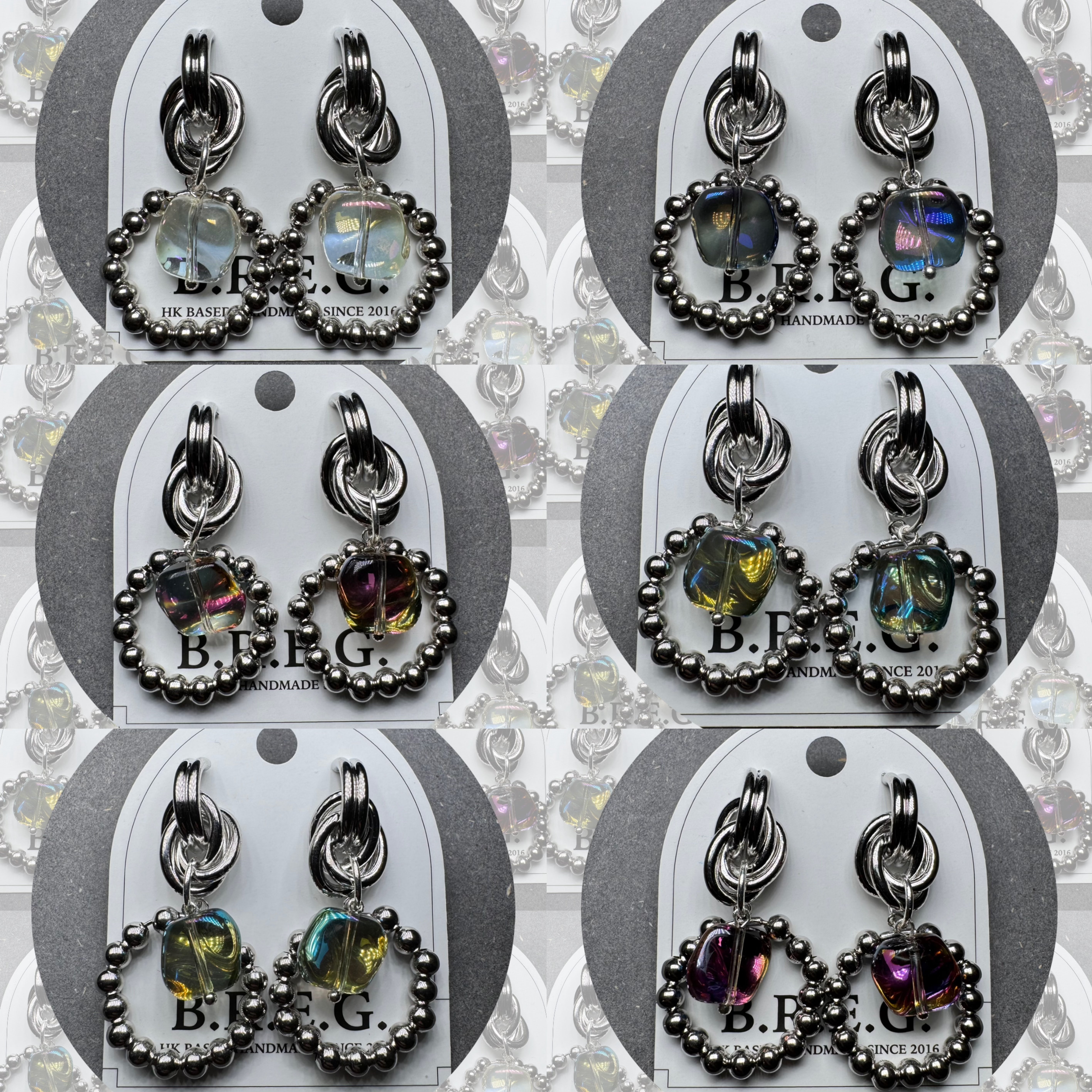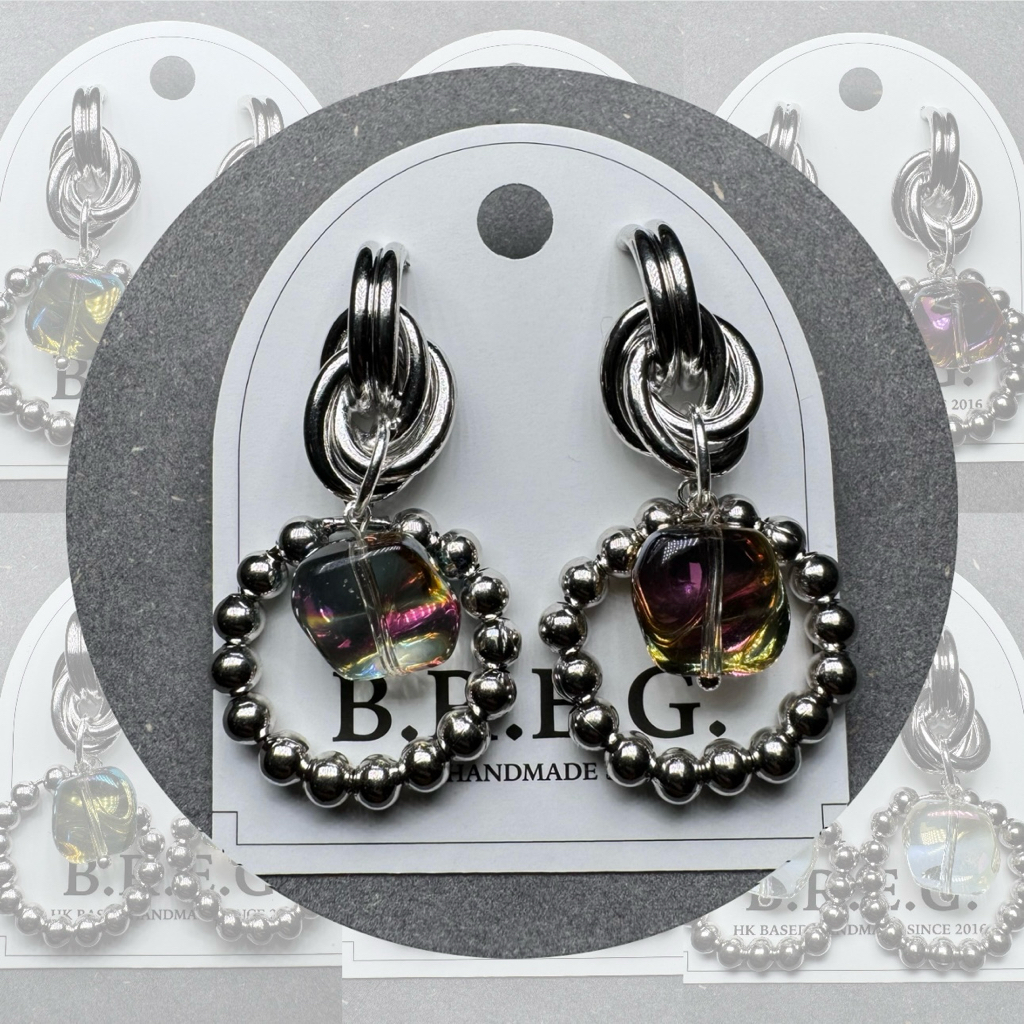 材質: 925銀耳針 /幻彩琉璃 /金屬珠環 重量:輕 長度:約4cm