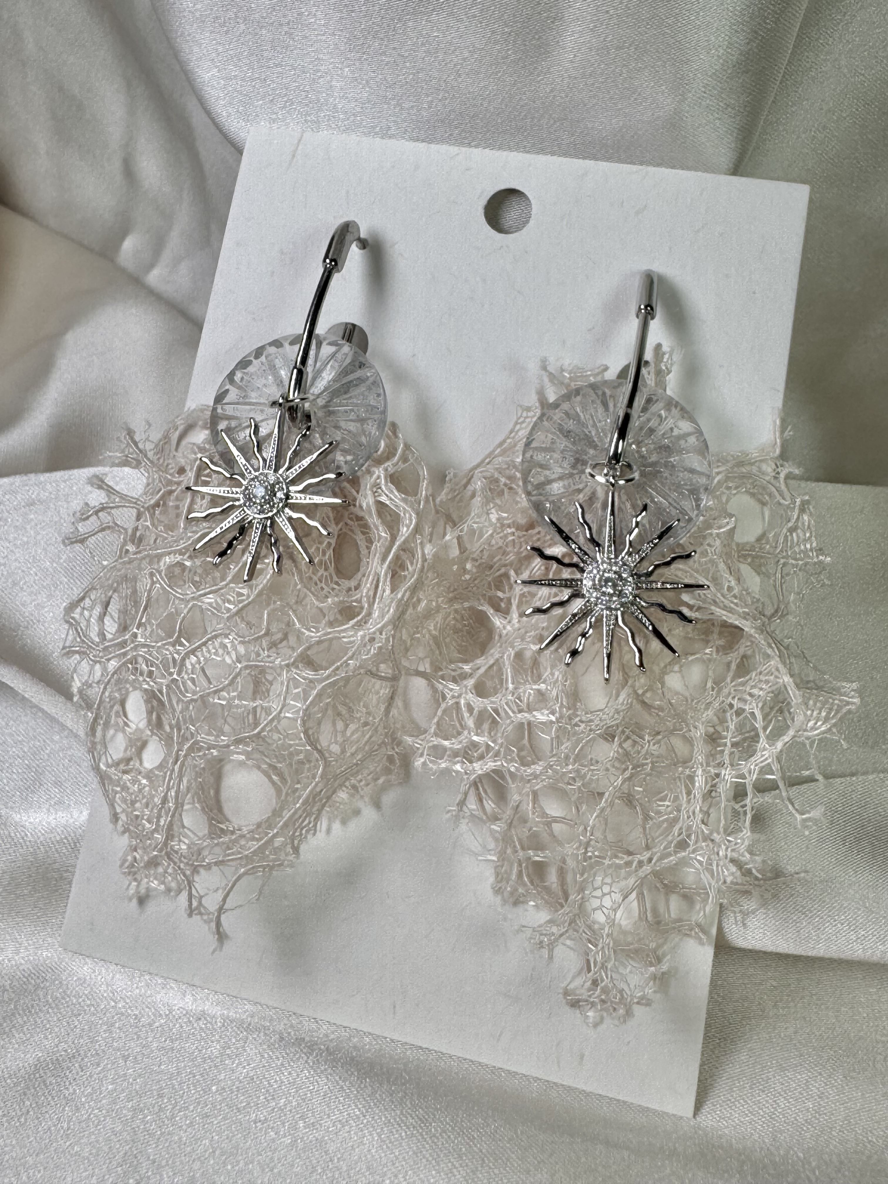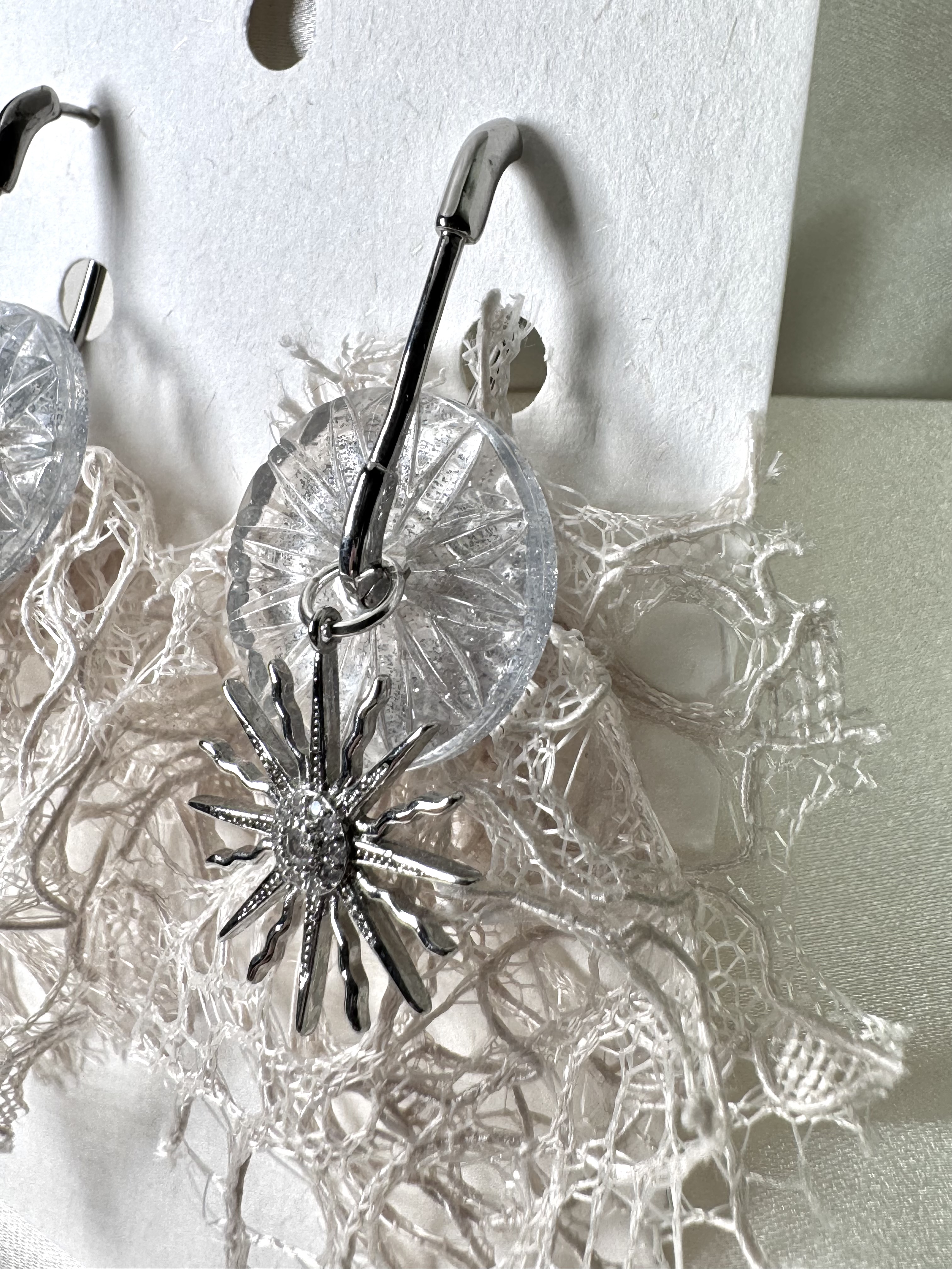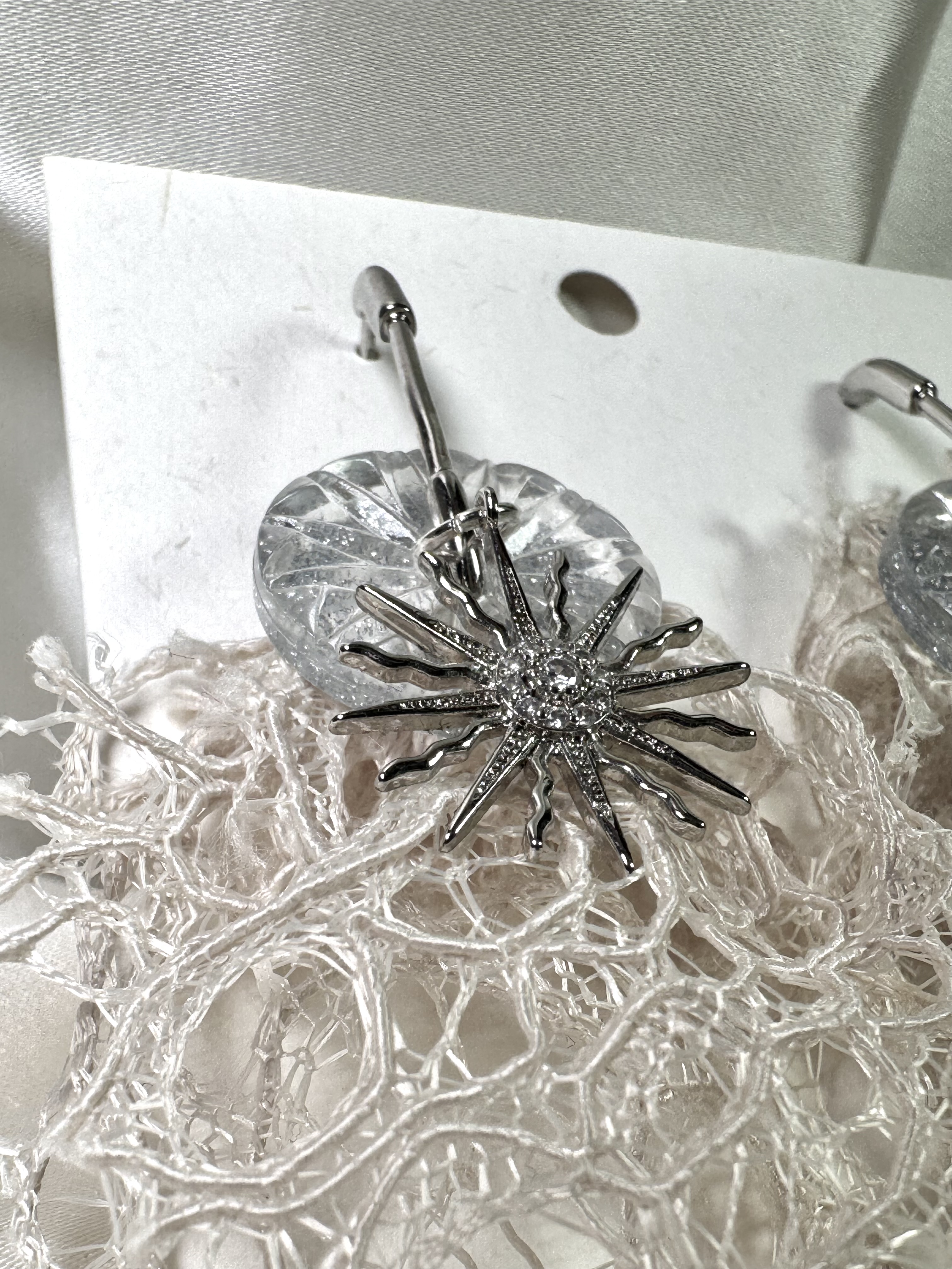 材質:925銀耳針/別針耳釘/透明亞克力鈕扣/閃星配件 重量:輕 長度:長約8cm