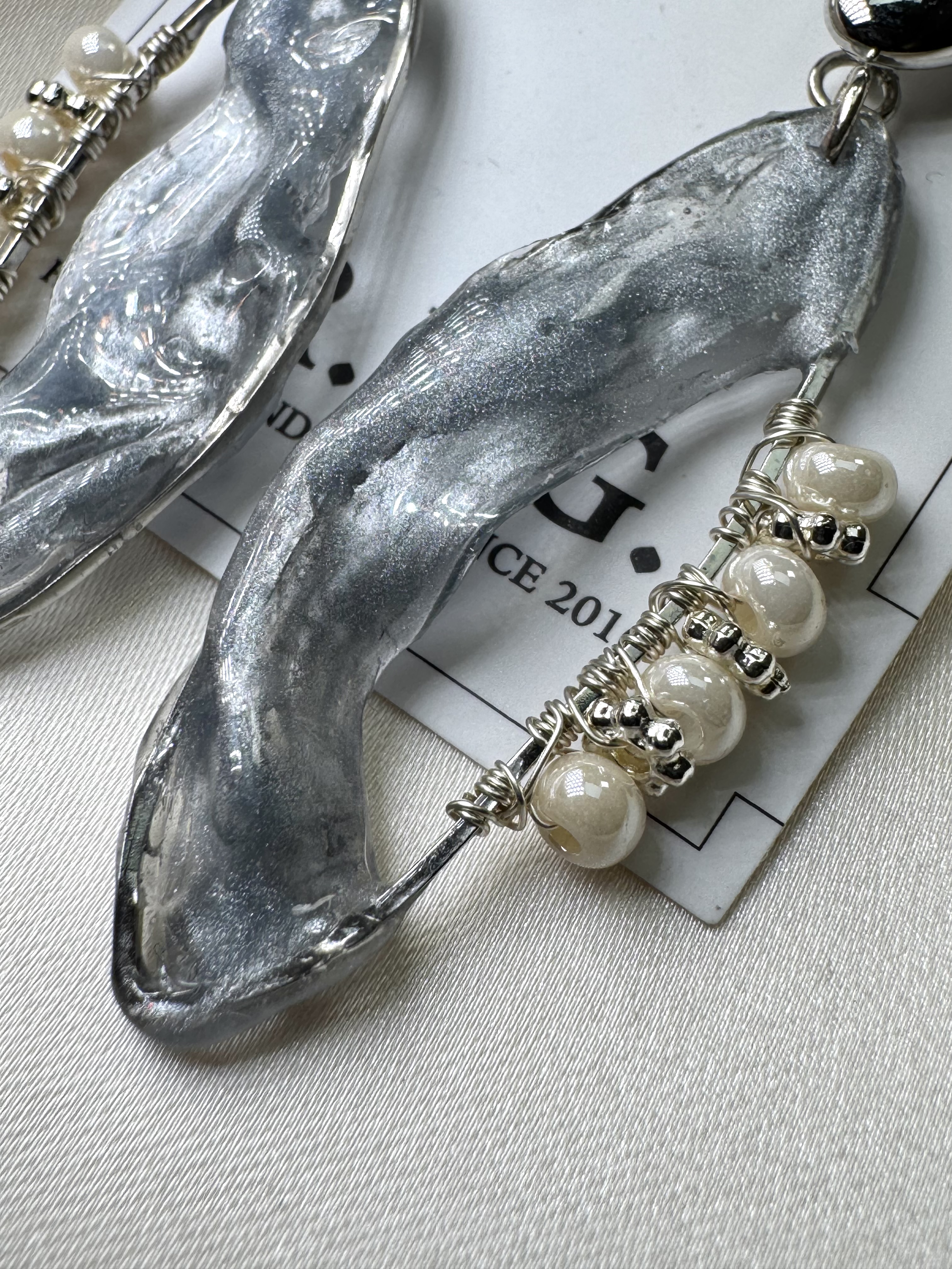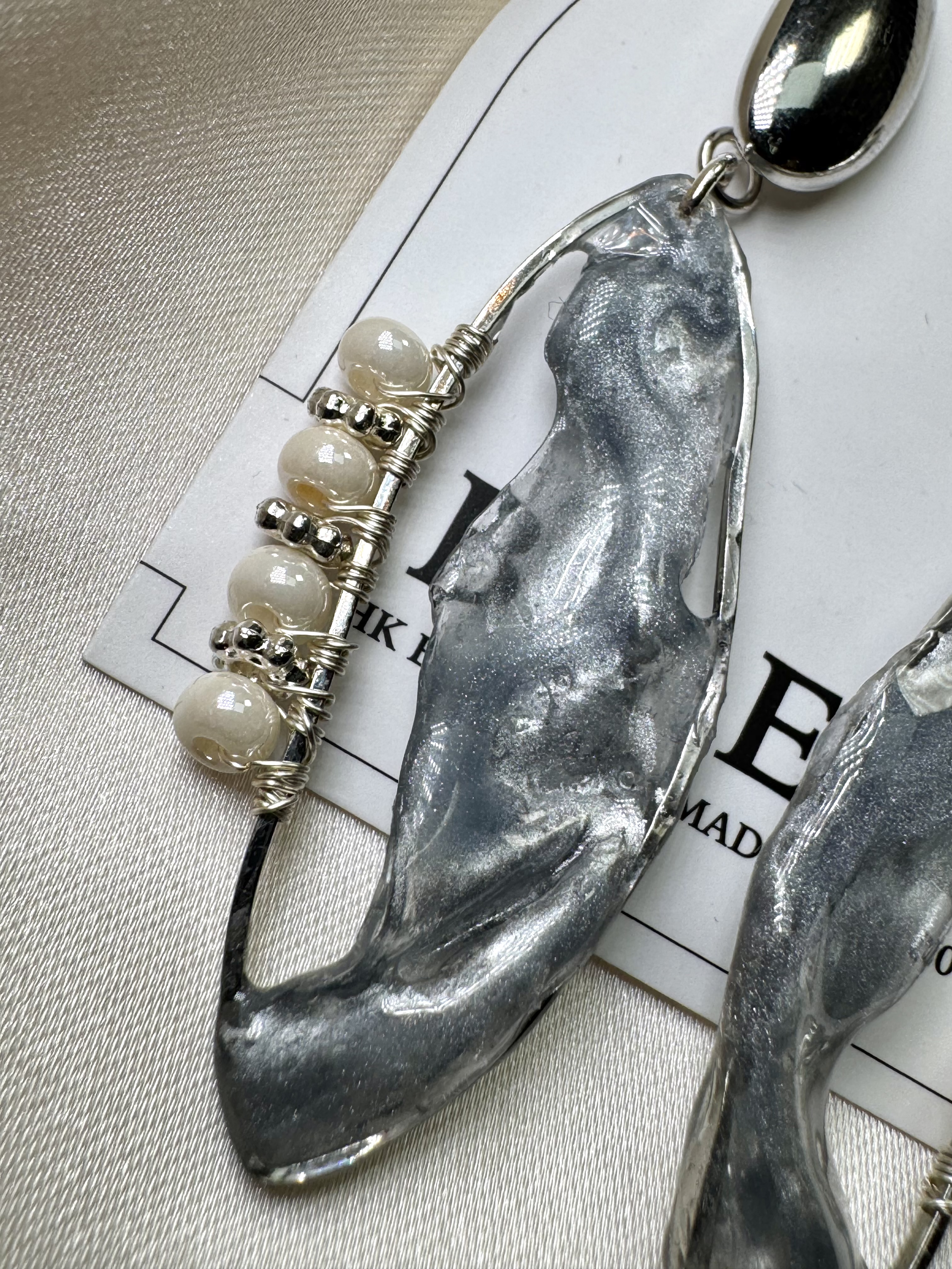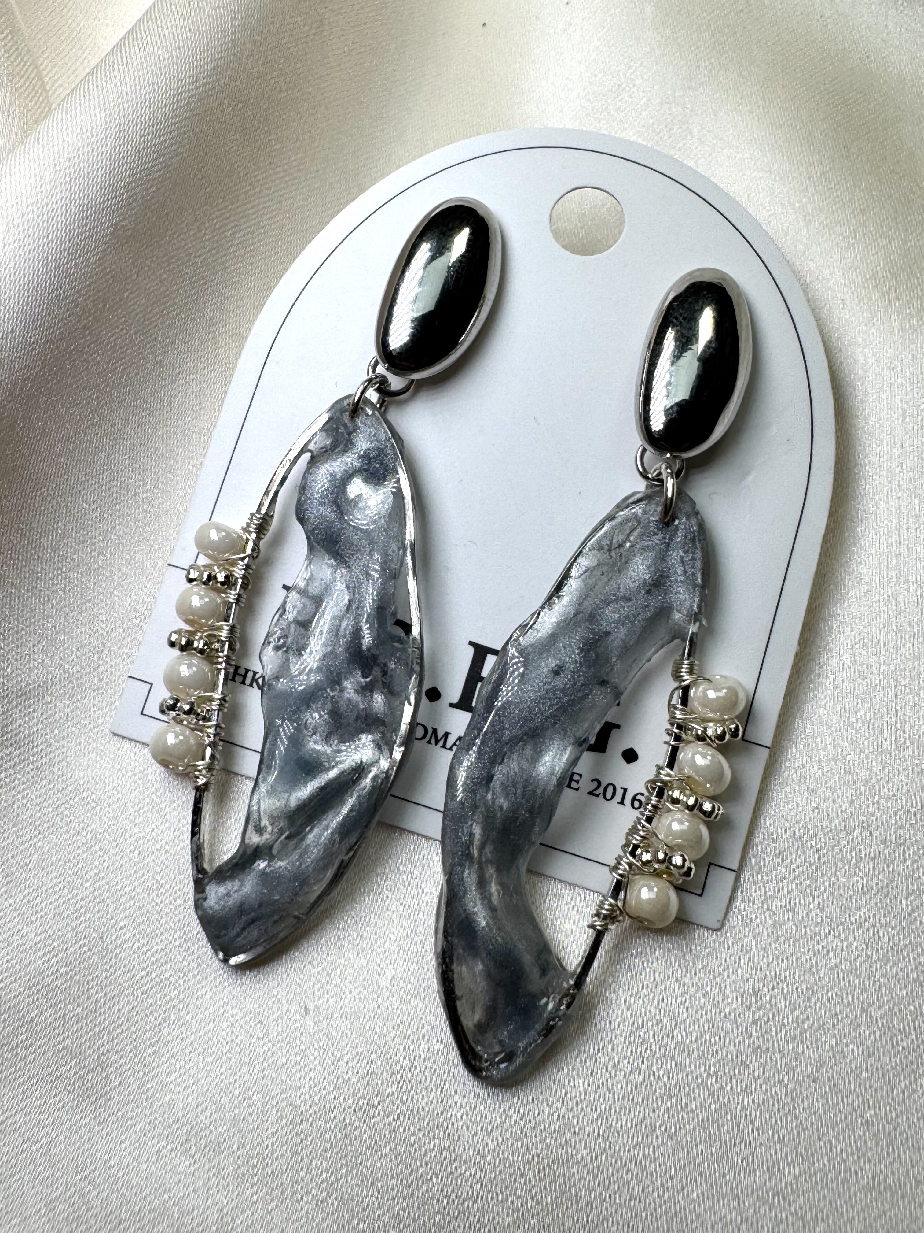 材質:925銀耳針/米白日本玻璃珠/ UV膠流光配件 重量:一般 長度:長約6cm