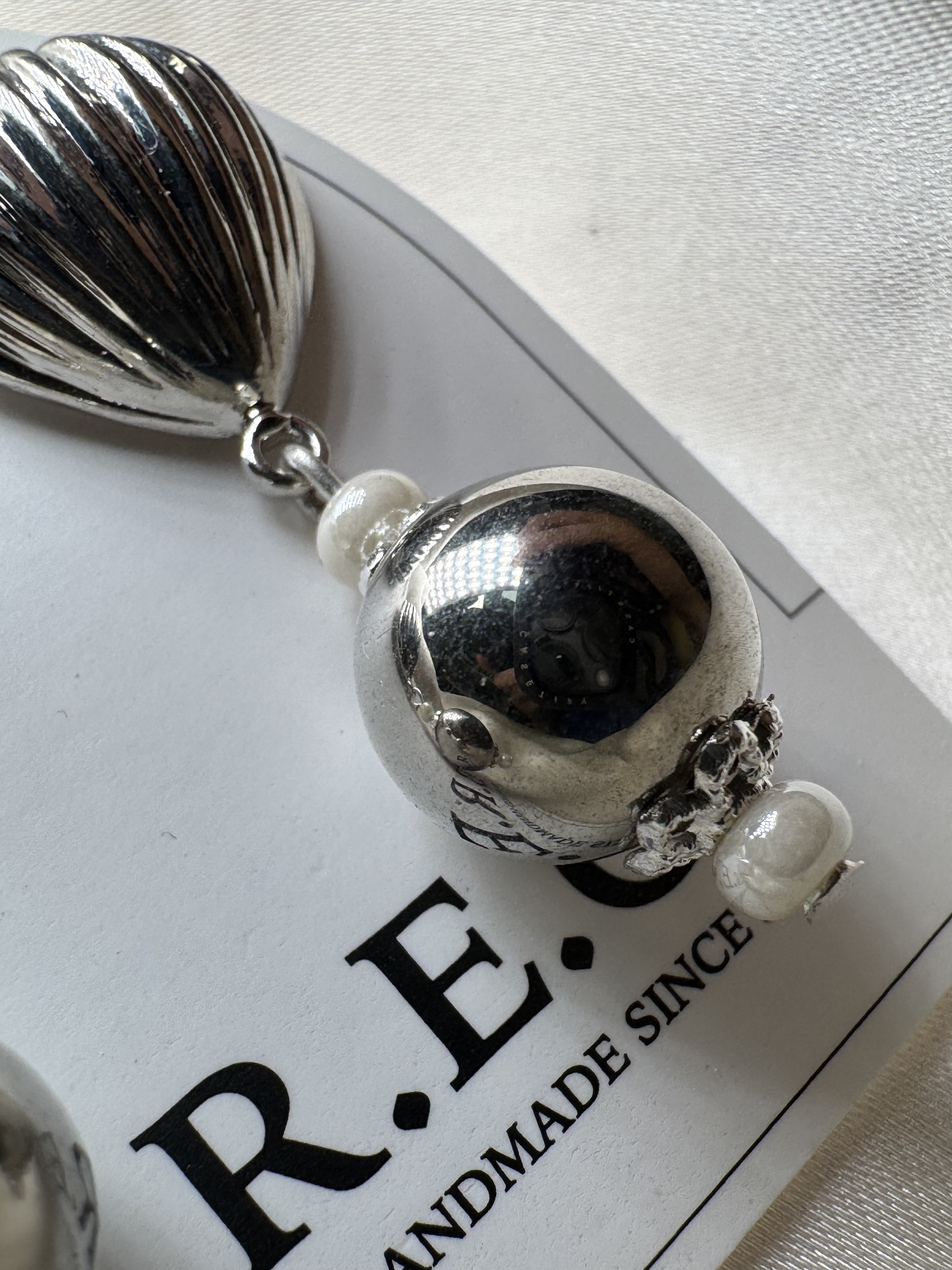 材質:925銀耳針/日本玻璃米珠 重量:輕 長度:長約3cm