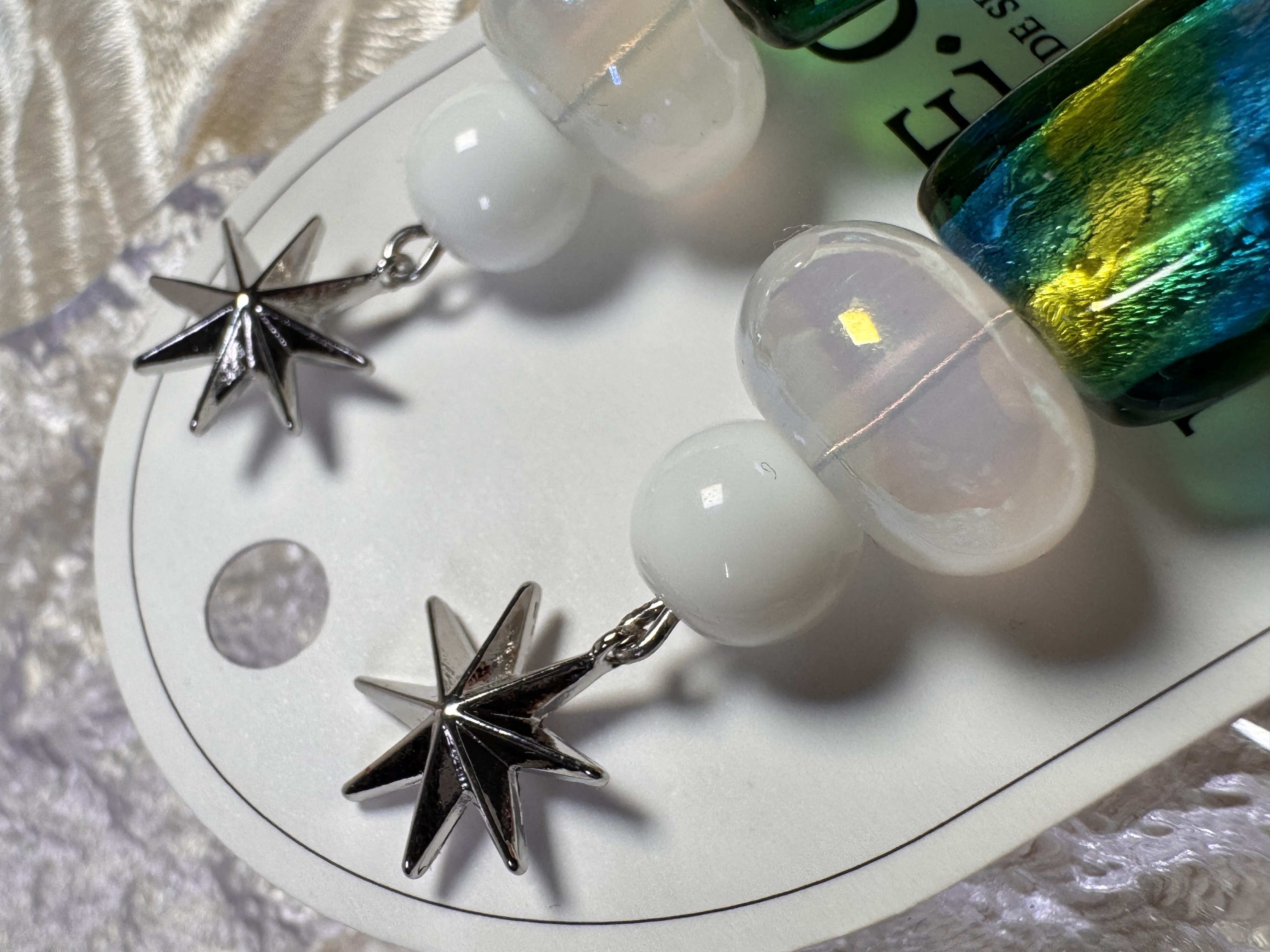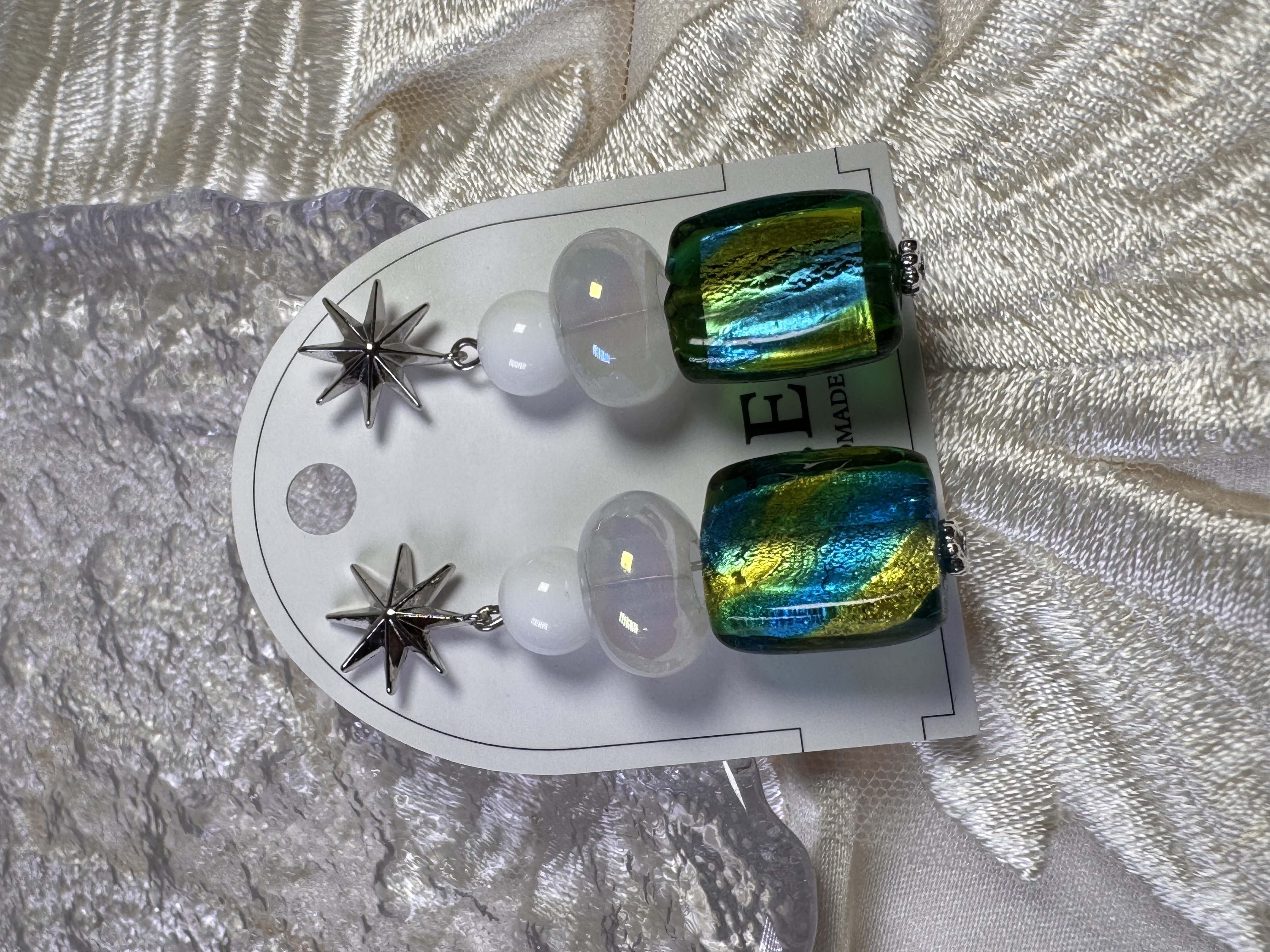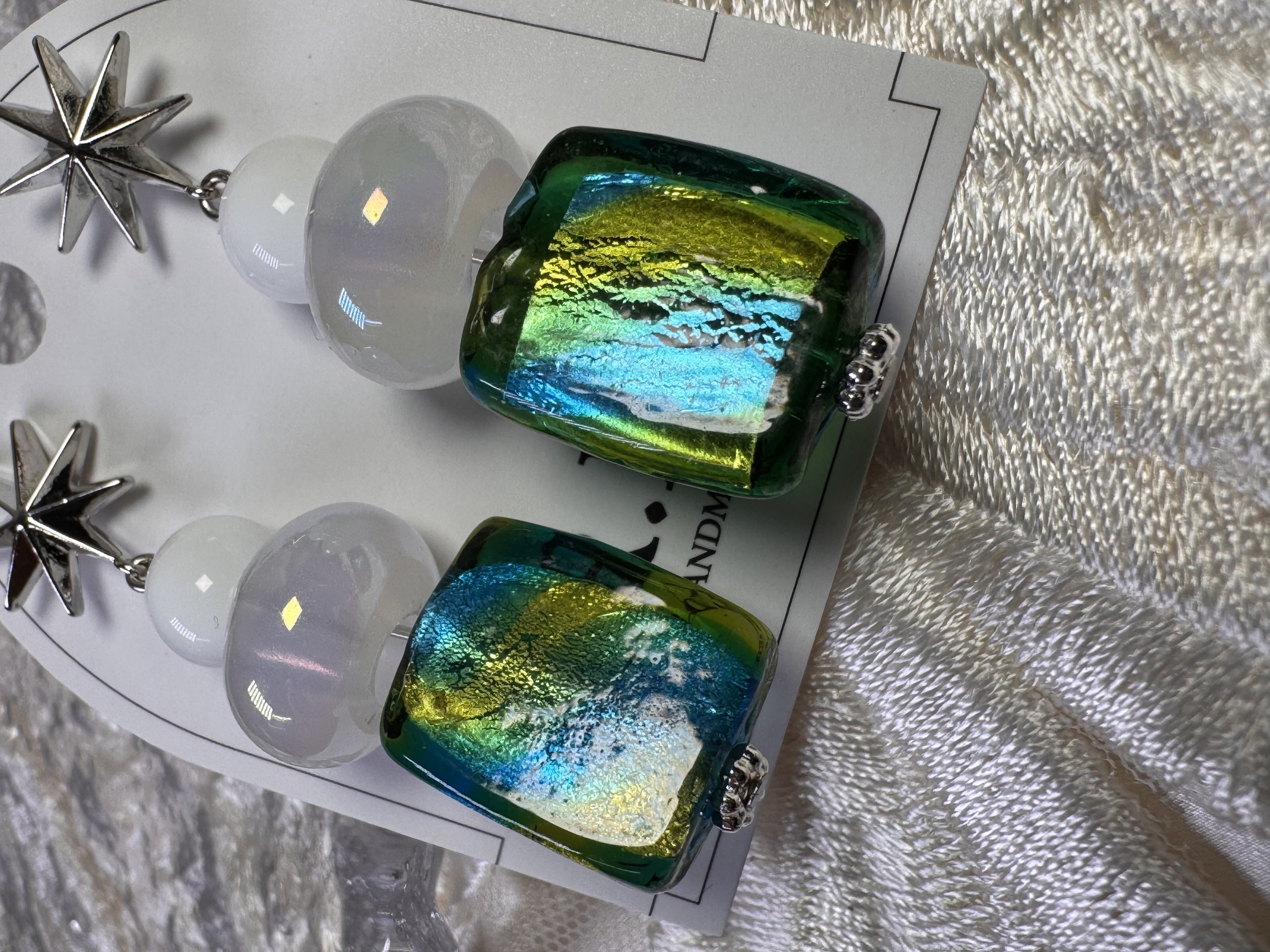 材質:925銀耳針/復古燙金手工玻璃珠 重量:一般 長度:長約5cm