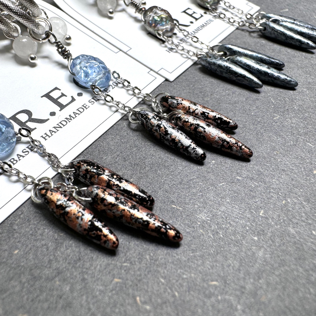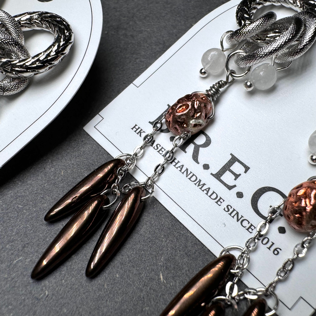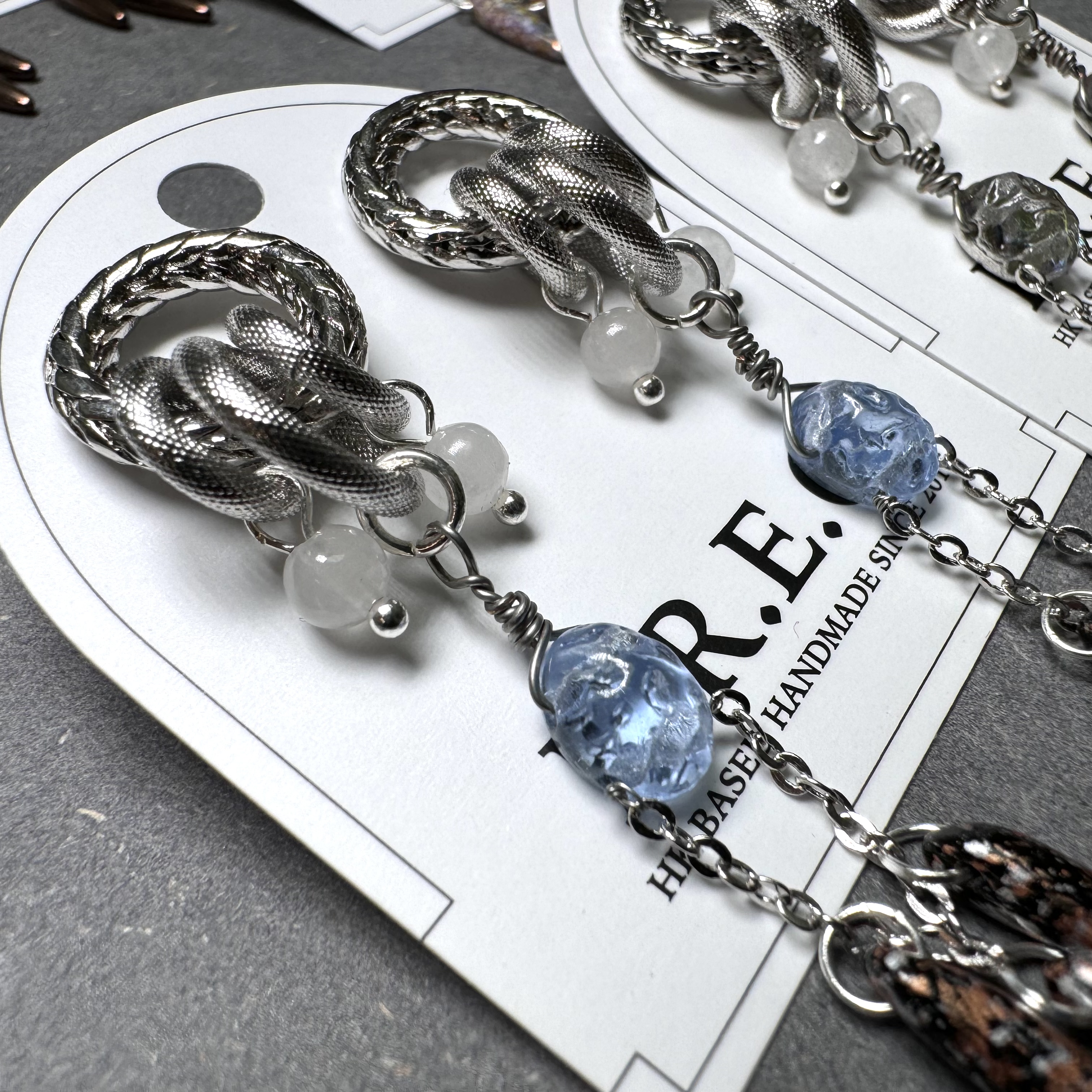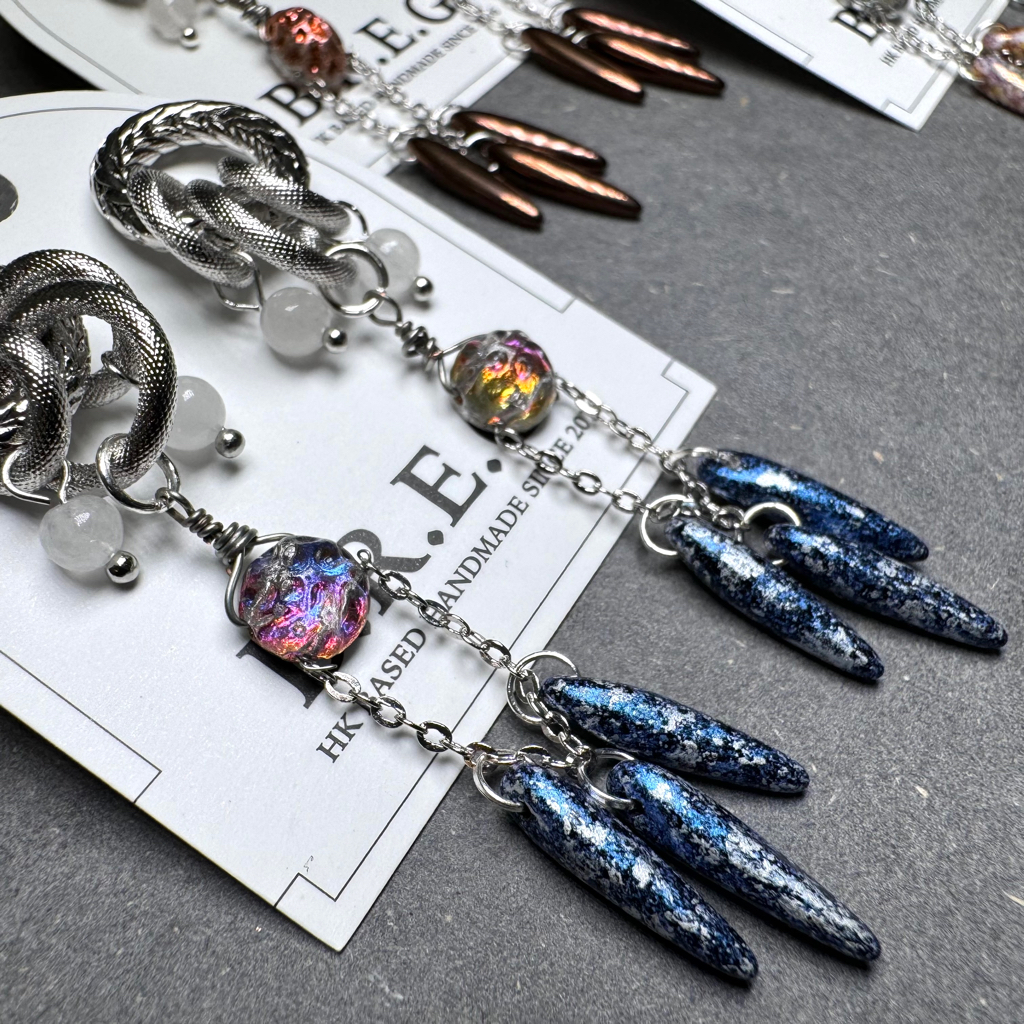 材質:龍紋環耳釘/925銀耳針/鍍彩蛋形玻璃珠/鍍彩玻璃尖珠/白水晶珠 重量:一般 長度:約7cm