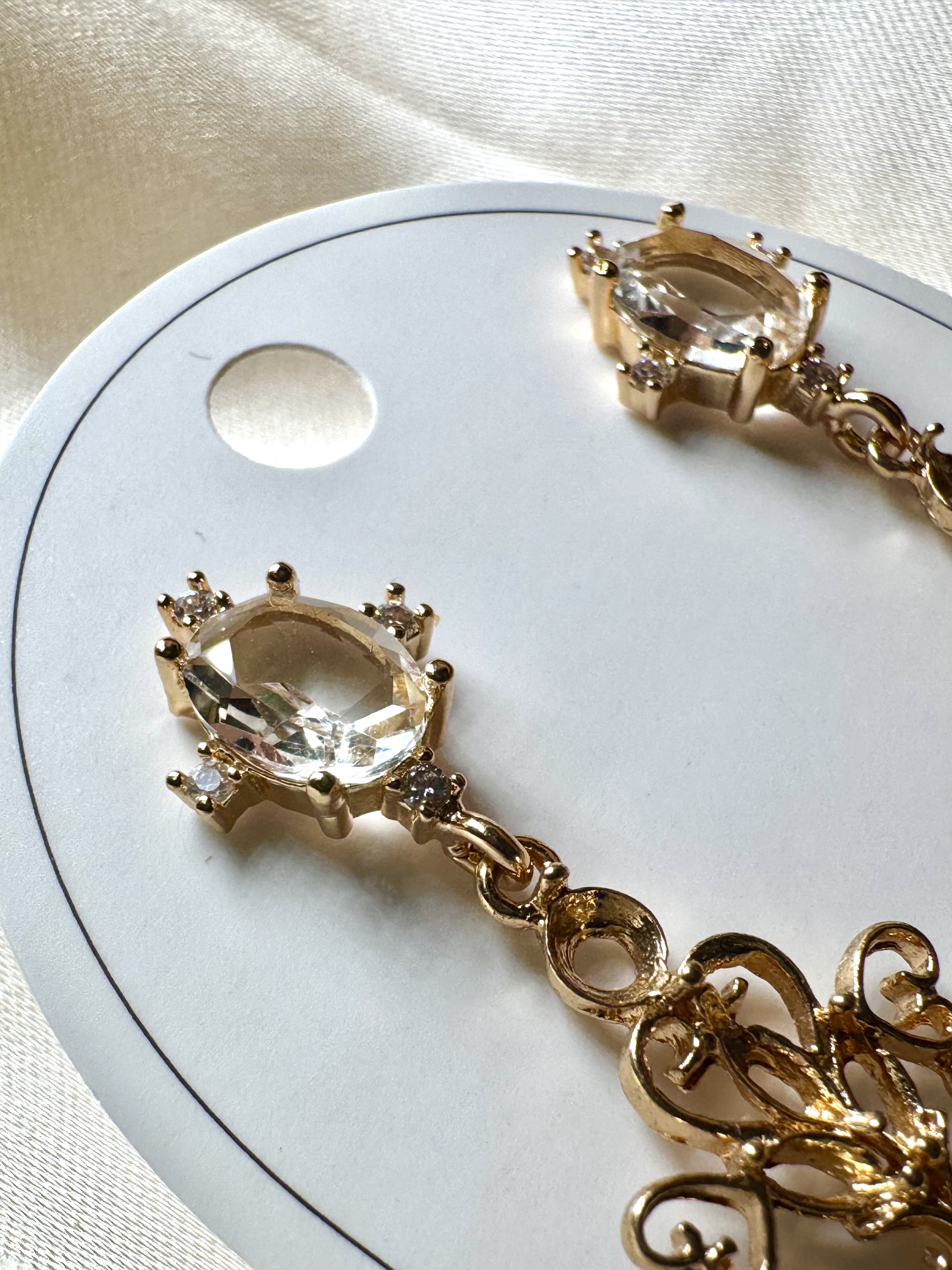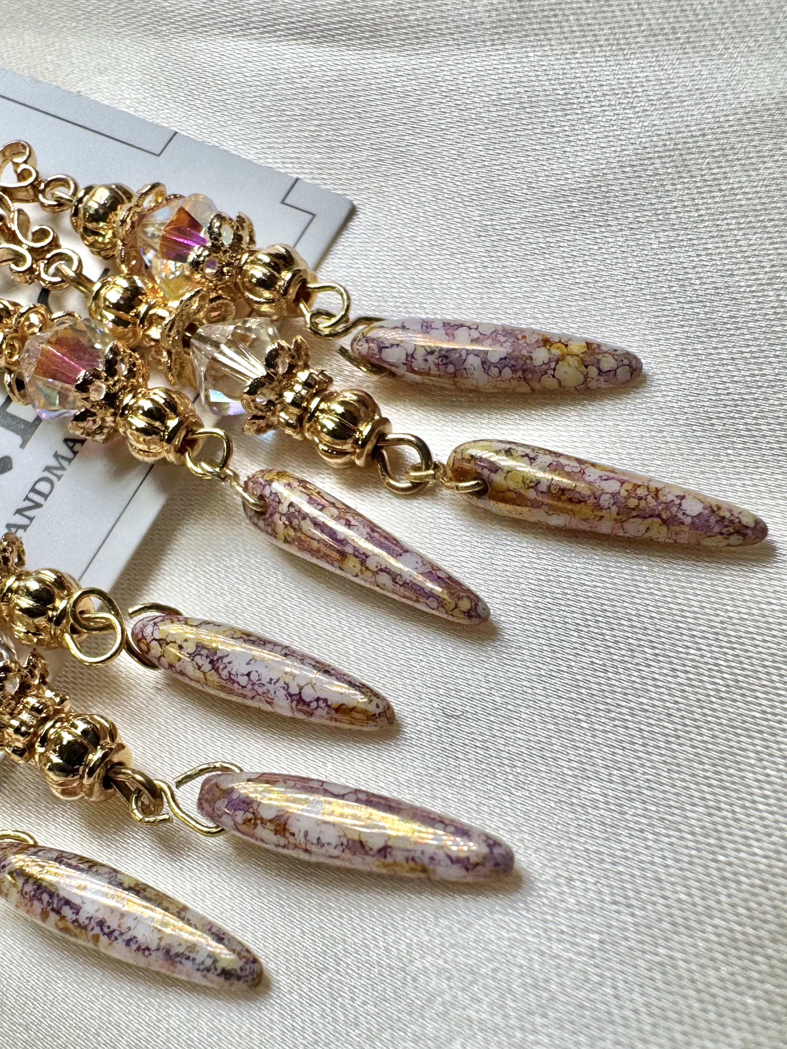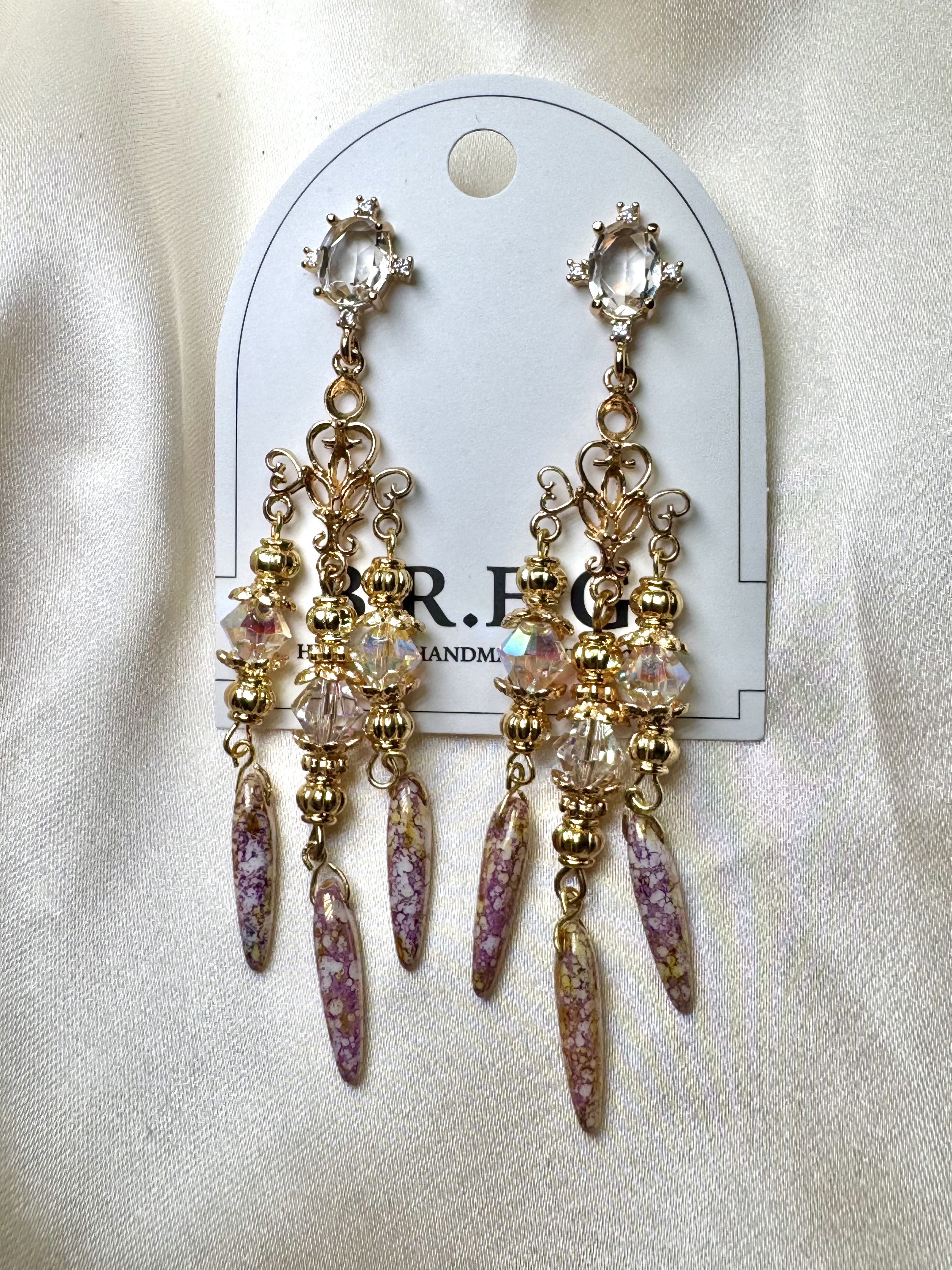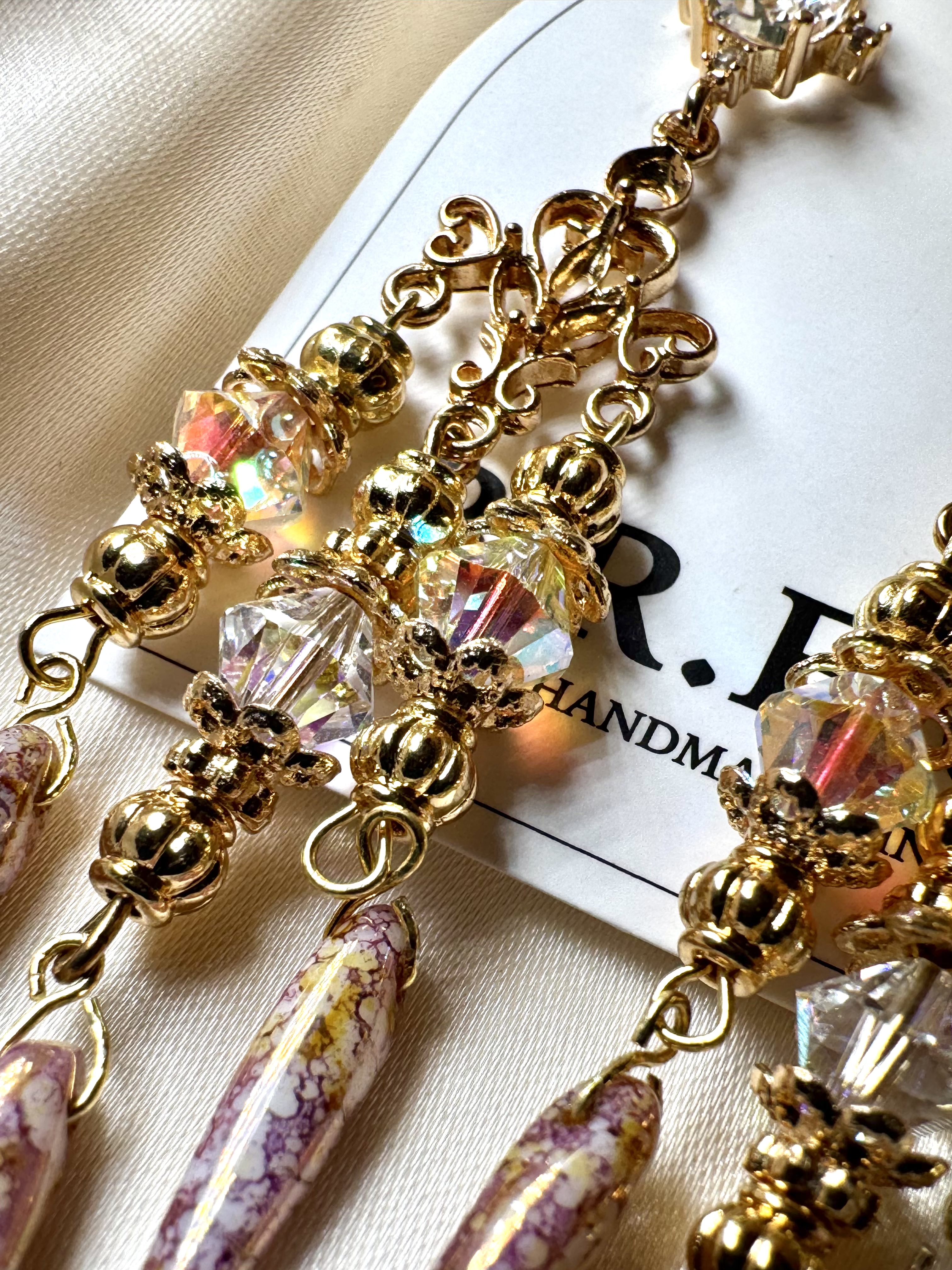 材質:925銀耳針/ 玻璃鋯石耳釘/ 施華洛世奇水晶珠/日本噴金尖珠 重量:一般 長度:長約8cm